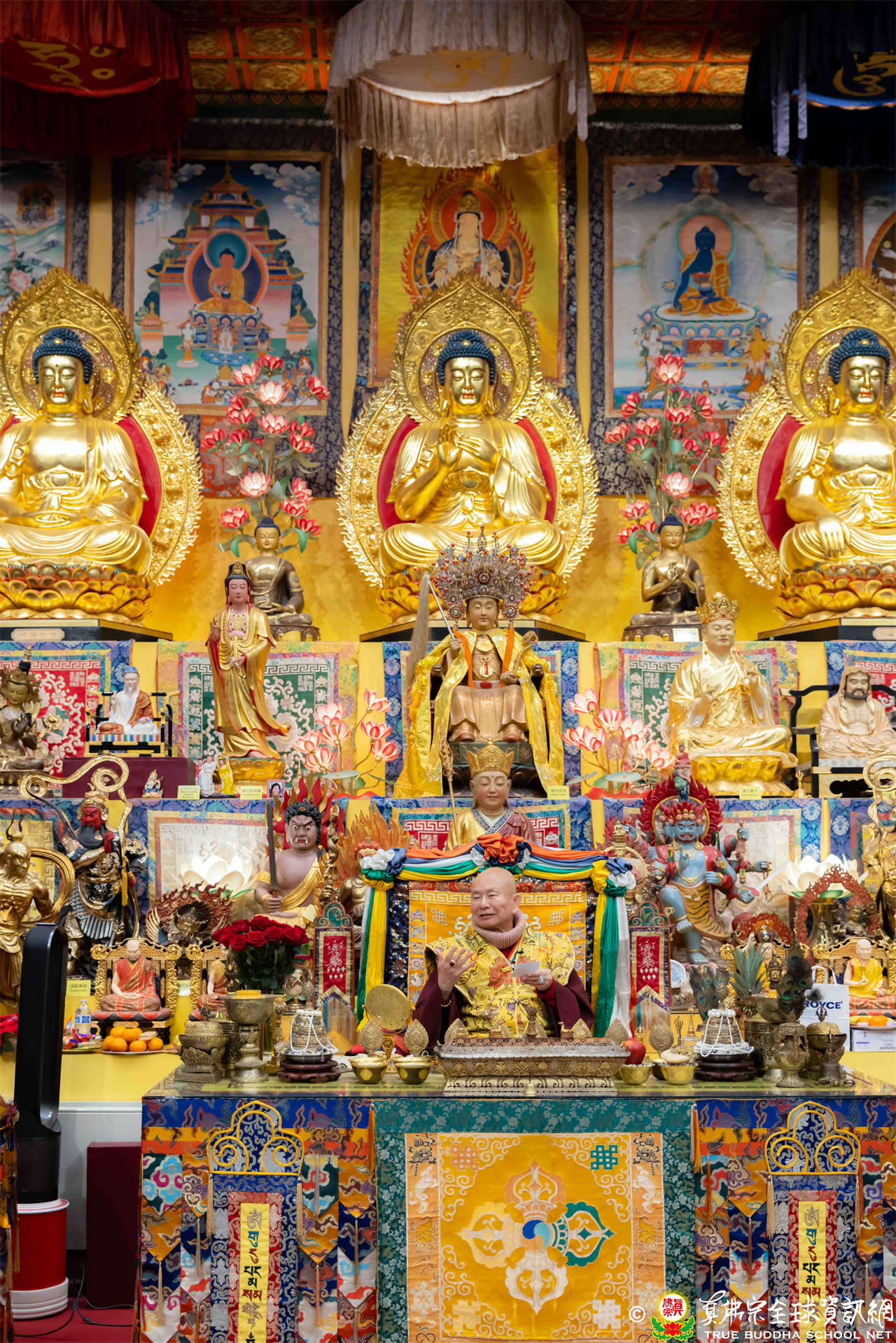 冬季即將到來,寒意凜凜,但四眾弟子心中卻是暖呼呼的,隨著蓮花童子咒音的響起,一同恭敬地迎接聖尊蓮生活佛盧勝彥蒞臨主持黃財神本尊法同修。眾弟子跟隨聖尊修法,滿心法喜,同修圓滿吉祥,大眾全神貫注的聆聽聖尊法語開示。