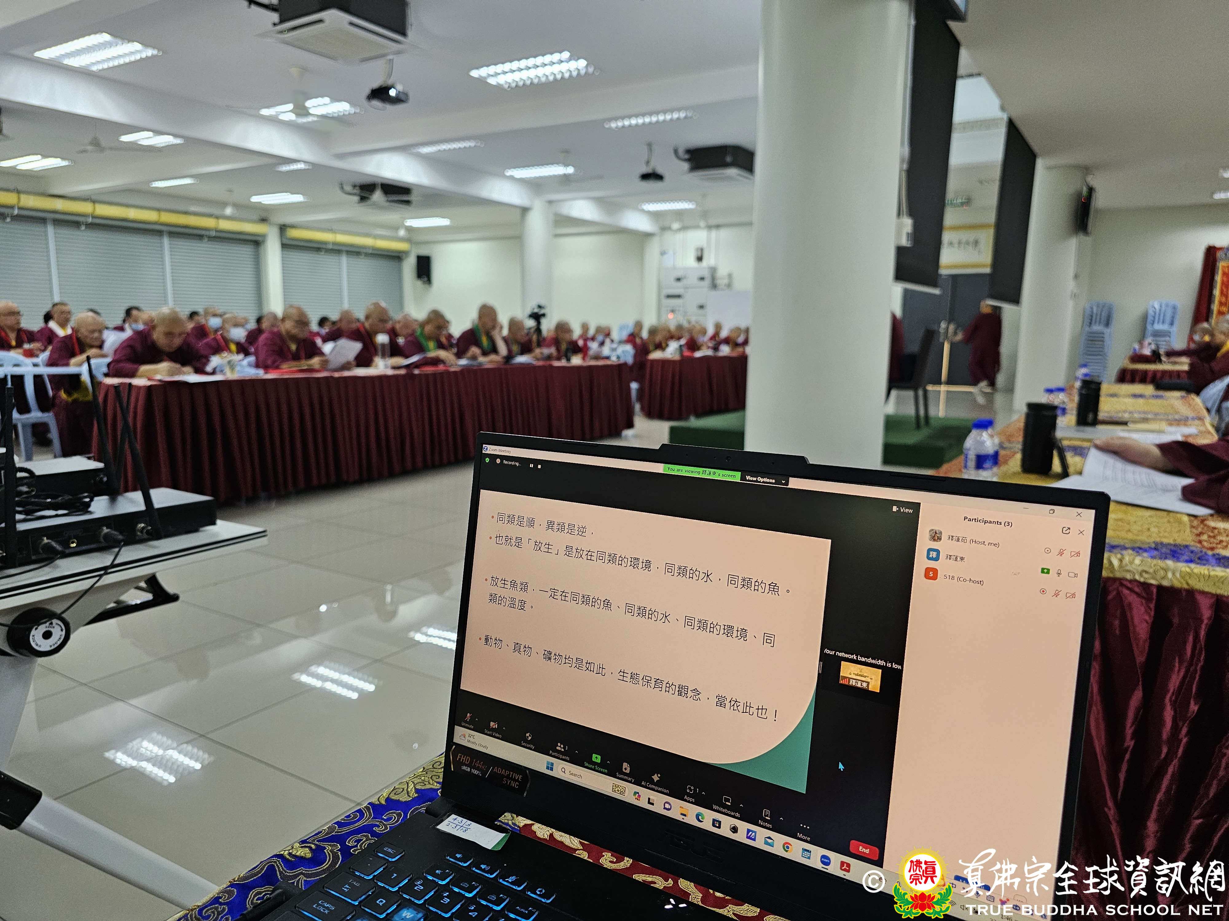 在隆重的供僧大會、釋迦牟尼佛護摩法會後,繼續進行教育實體課程,本堂課主題為《放生應有的正確觀念及做法》,由法務處處長釋蓮東上師主講。除了講解「何謂放生?」課中更交替引用師尊文集內容做引證,讓學員更一步瞭解「戒殺、放生、護生」。