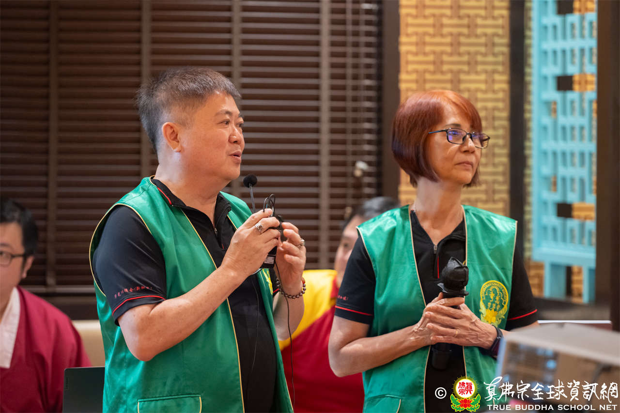 響應宗委會的號召,特別在交流會開始前,由淵聲助教帶領簡易修法及念佛號回向給敬愛的師尊、師母。接著在真佛宗宗歌「感恩真佛」的歌聲後,由會長致開幕詞,交流會正式開始。