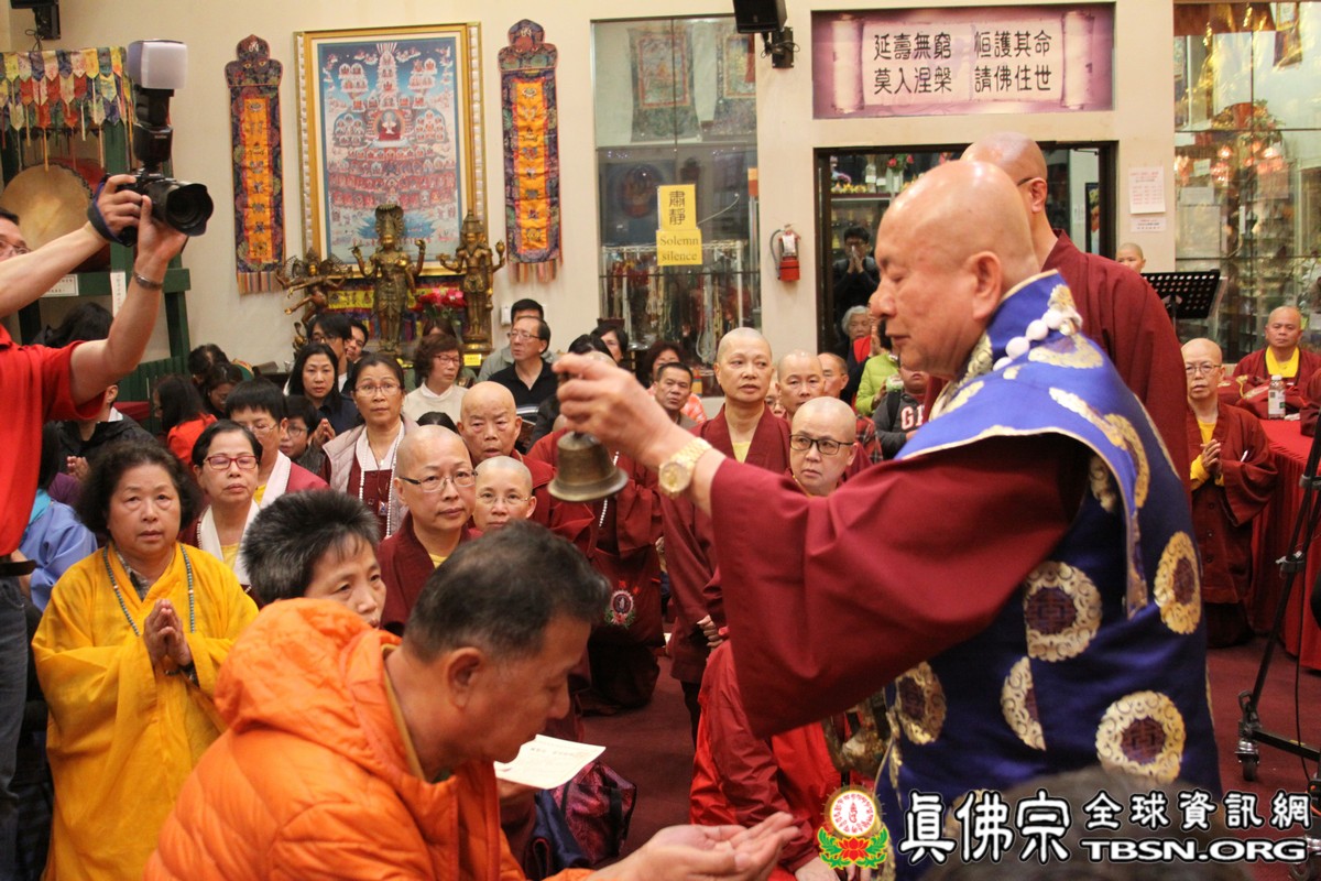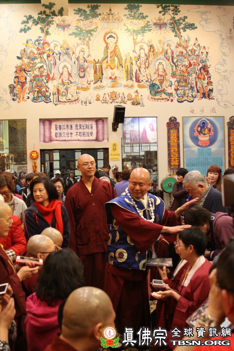 珍貴的開示完畢,師尊為新皈依弟子灌頂、加持壇城與眾等,並為弟子摩頂加持,令眾等法喜充滿。
