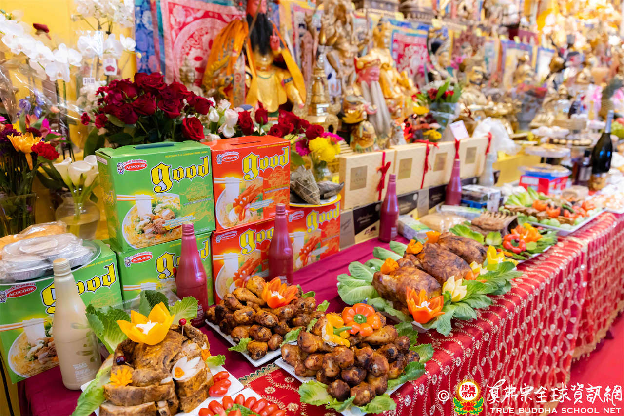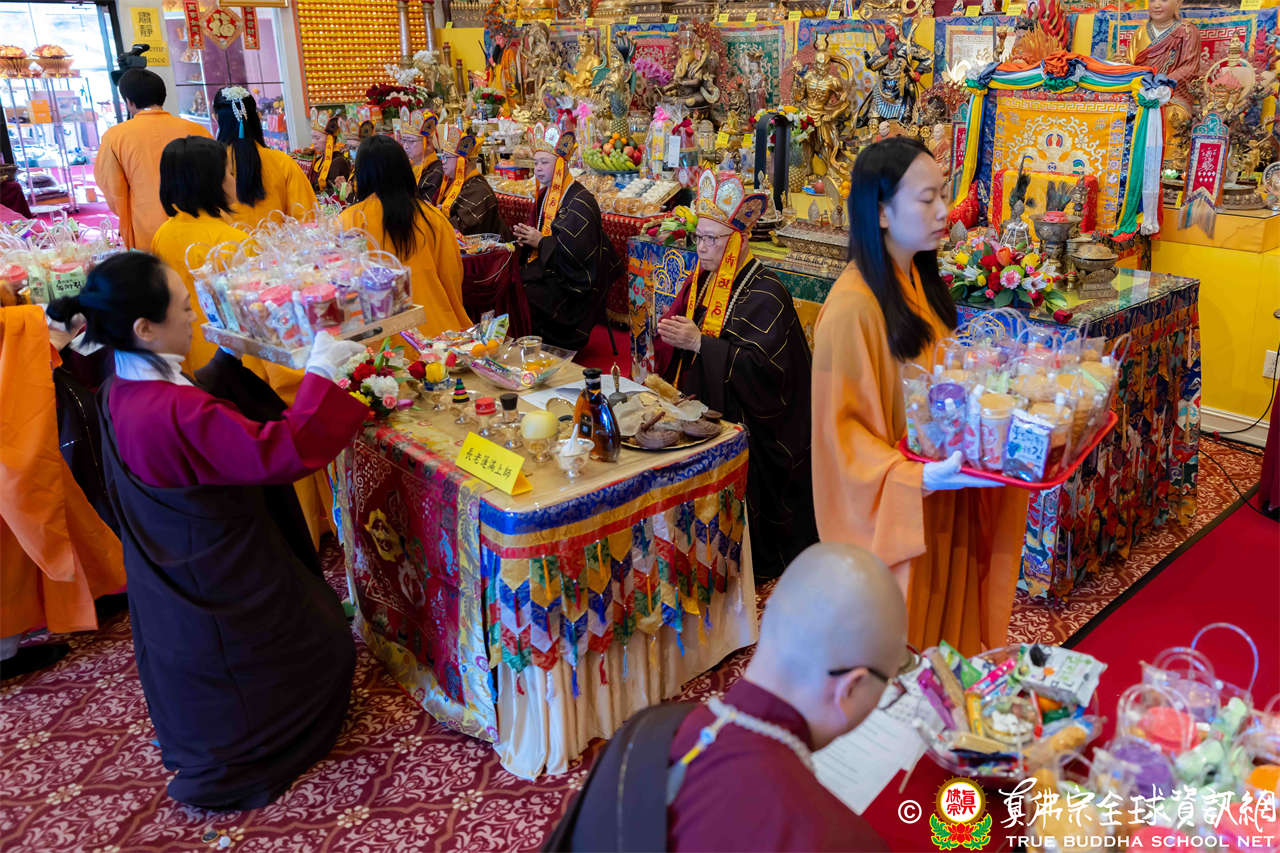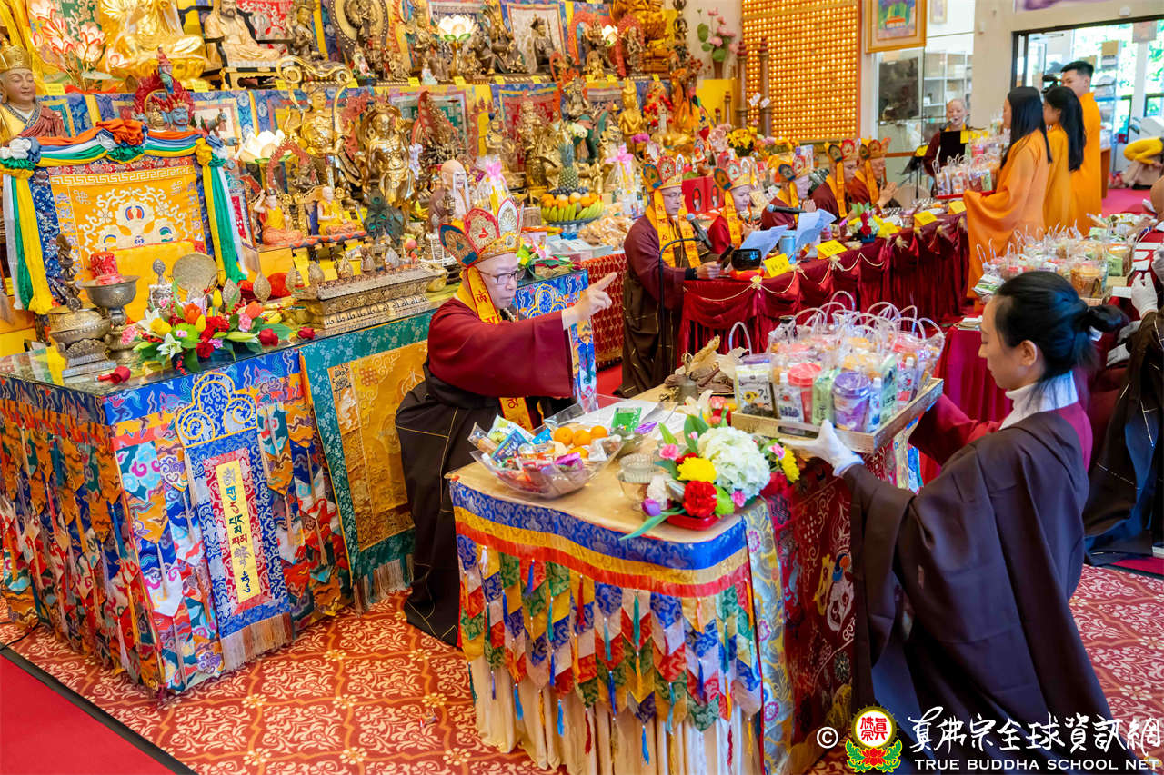 從2023年11月24日下午開始,西雅圖雷藏寺和彩虹雷藏寺的眾上師、法師及義工們,便滿懷著洋溢的熱情,在西雅圖雷藏寺緊鑼密鼓地佈置現場。他們把採購回來的鮮花、食品及禮品,帶著最虔敬的心進行設計、加工、包裝和擺放,重新裝飾成絢麗奪目、豐富多彩的貢品,供養給明日的薈供本尊瑤池金母大天尊等佛菩薩金剛護法龍天諸尊。