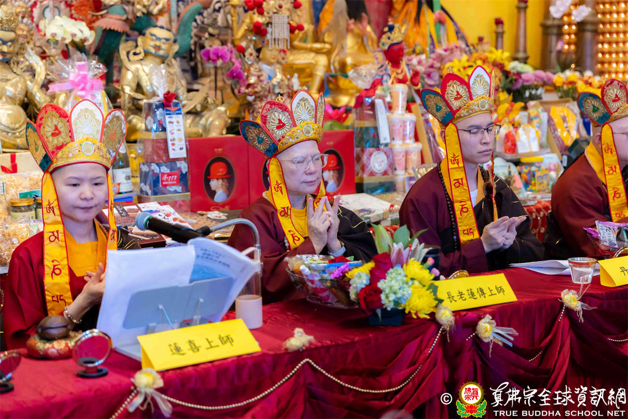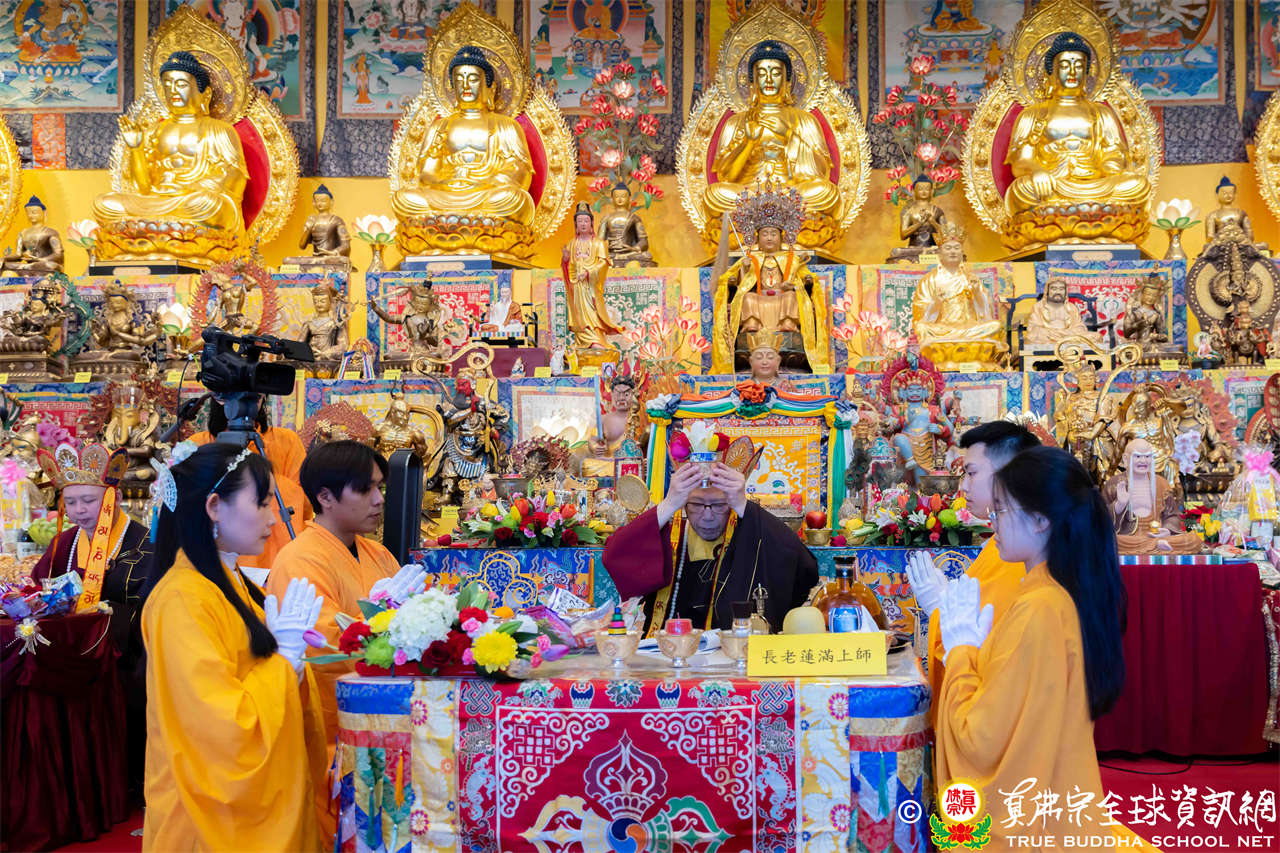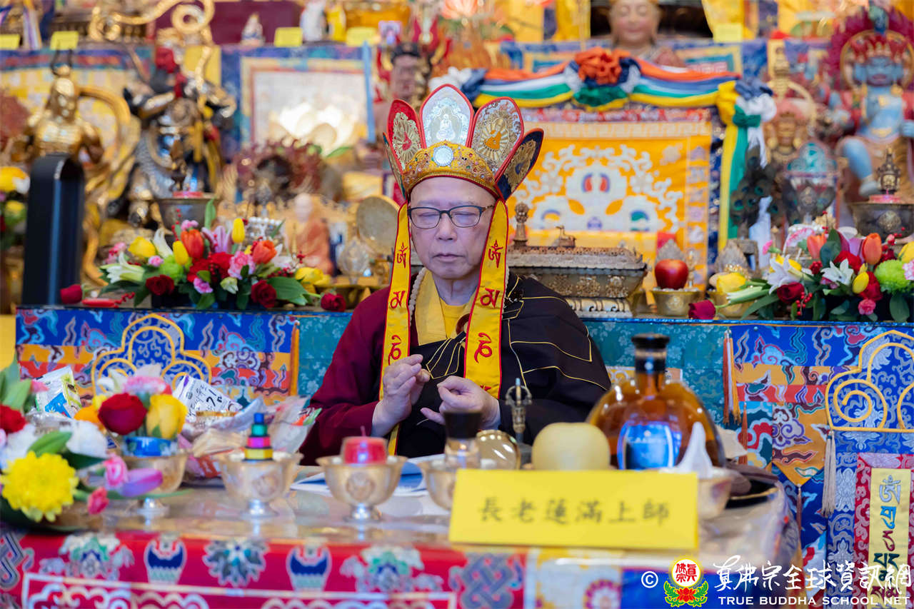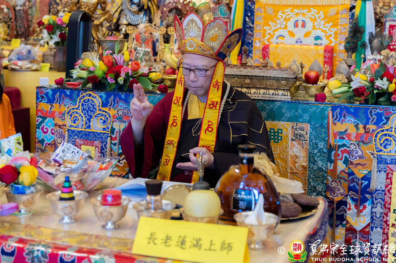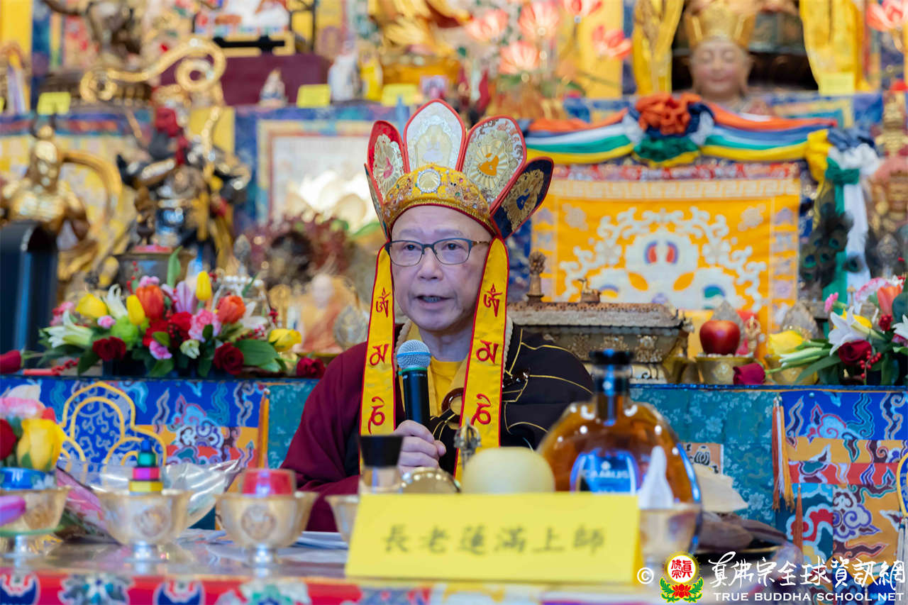 蓮滿長老致詞感恩瑤池金母放光加被,並感恩阿彌陀佛、十方三世諸佛菩薩慈悲護佑師佛與師母消災延壽、身心安康、請佛住世、長轉法輪,感謝所有參與的道場及弟子的共同發心,使得兩個場次的瑤池金母薈供法會都順利圓滿。