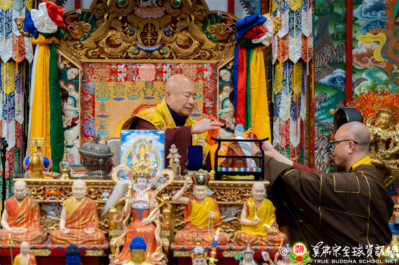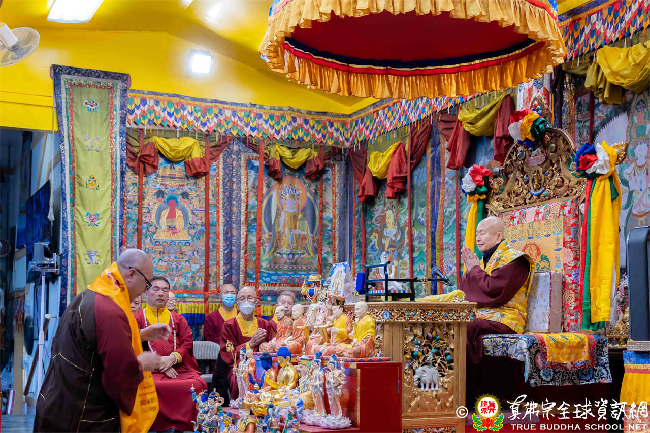 精彩的開示後,聖尊與zoom上弟子們互相問候,並為現場弟子灌頂「除蓋障菩薩」法。法會圓滿吉祥。