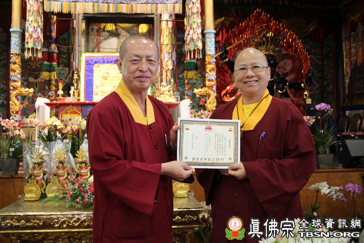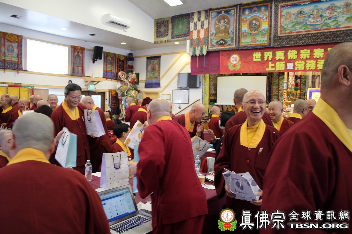 在此次會議中,會長頒發「當選證書」給常務委員,我們祝賀新一屆的宗委會常務委員當選,感謝上師們多年來無私的奉獻與付出,藉著交換禮物,彼此交流與祝福。