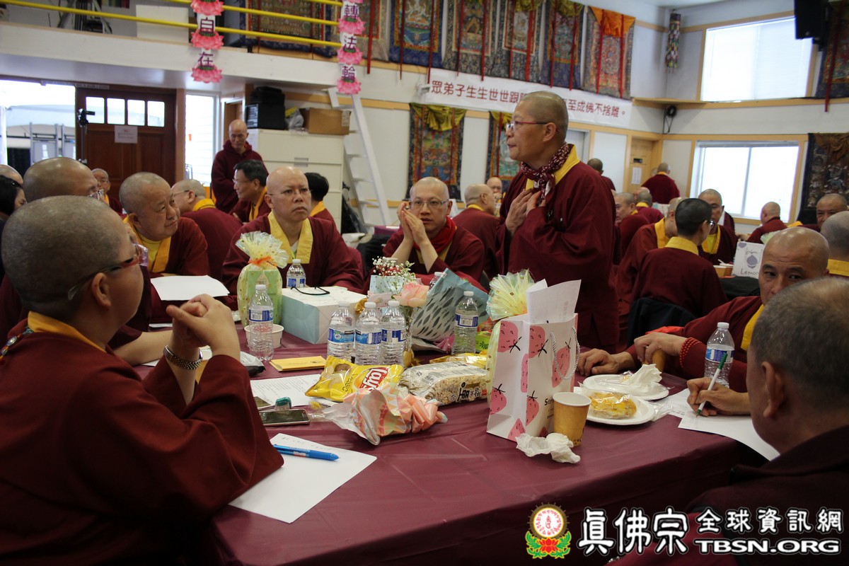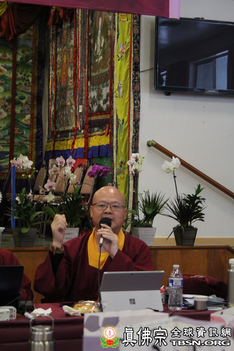 根據會議的流程,由司儀帶領大家誦密教十四大戒及師事法五十頌。接著,會長蓮花程祖上師主持「上師守則修改議案」,和與會上師詳細的討論與互動,使得守則得到圓滿的修正,並最後決議通過。接下來,文宣處長蓮悅上師回顧查閱了曾在上師會議所發的意見調查表中,針對文宣處的建議及問題,其中一項如何建立優質官方網站、社群和FB,上師們非常熱絡的交換心得,以自身的經驗提供文宣處各方面的寶貴意見。
