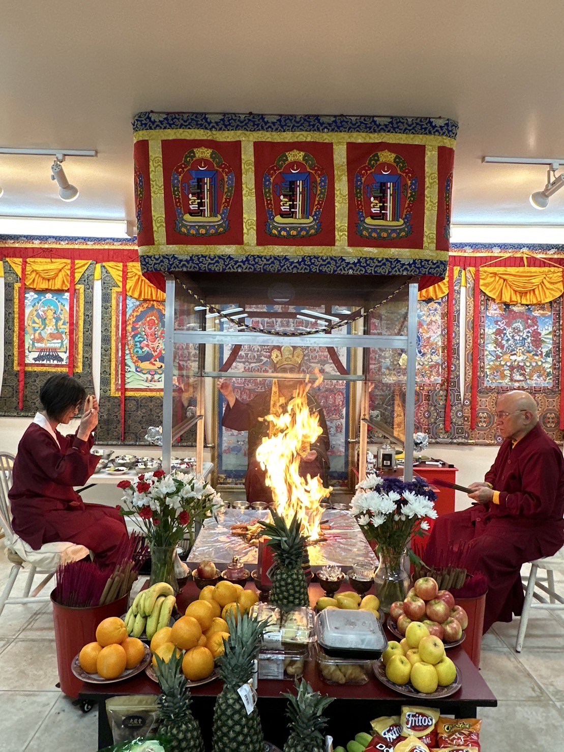 真佛宗美國登寶雷藏寺請佛住世「瑤池金母護摩火供」 美國登寶雷藏寺恭請蓮任上師於2023年11月06日、13日、21日、28日舉辦了請佛住世「瑤池金母護摩火供」修法迴向聖尊蓮生活佛: 身體健康常喜悅,百病不侵長安樂, 長養活潑精氣神,無憂無慮恆自在。 龍天護法恆守護,四眾弟子皆迴向, 請佛住世不捨離,真佛常住於世間。