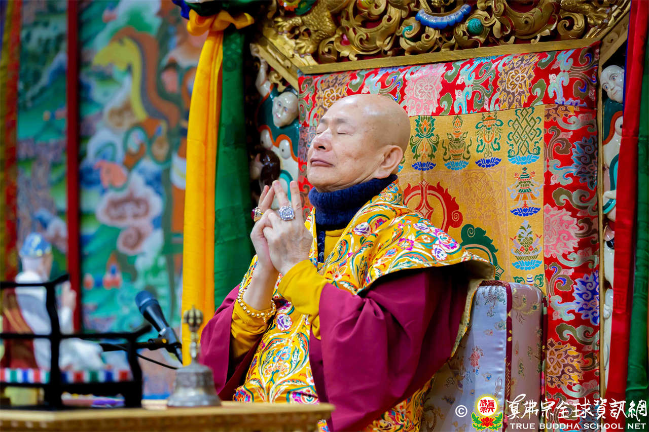 法王祈願真佛宗傳承綿遠不斷,弟子們都能得佛菩薩的救度。修行分自立及他力。向阿彌陀佛祈請,將來接引到西方極樂世界,就是借阿彌陀佛的力量到淨土(他力)。自力的修行包括「戒、定、慧」,是非常不容易的,所以需配合自力與他力。在藏密白教香巴噶舉派,祈請也是加行之一。我們祈請西方極樂世界三依怙主:阿彌陀佛、觀世音菩薩、大勢至菩薩,唸佛時憶念西方三聖現身接引,這是非常重要的。