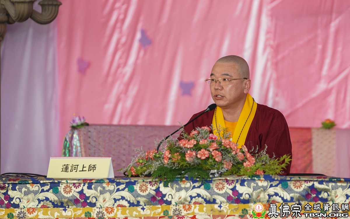 最後,由蓮悅上師為大眾主講「如何引導親友進入宗派,如何讓真佛宗傳播於五大洲?」上師先向大眾分享影響上師出家二十幾年的一句話。