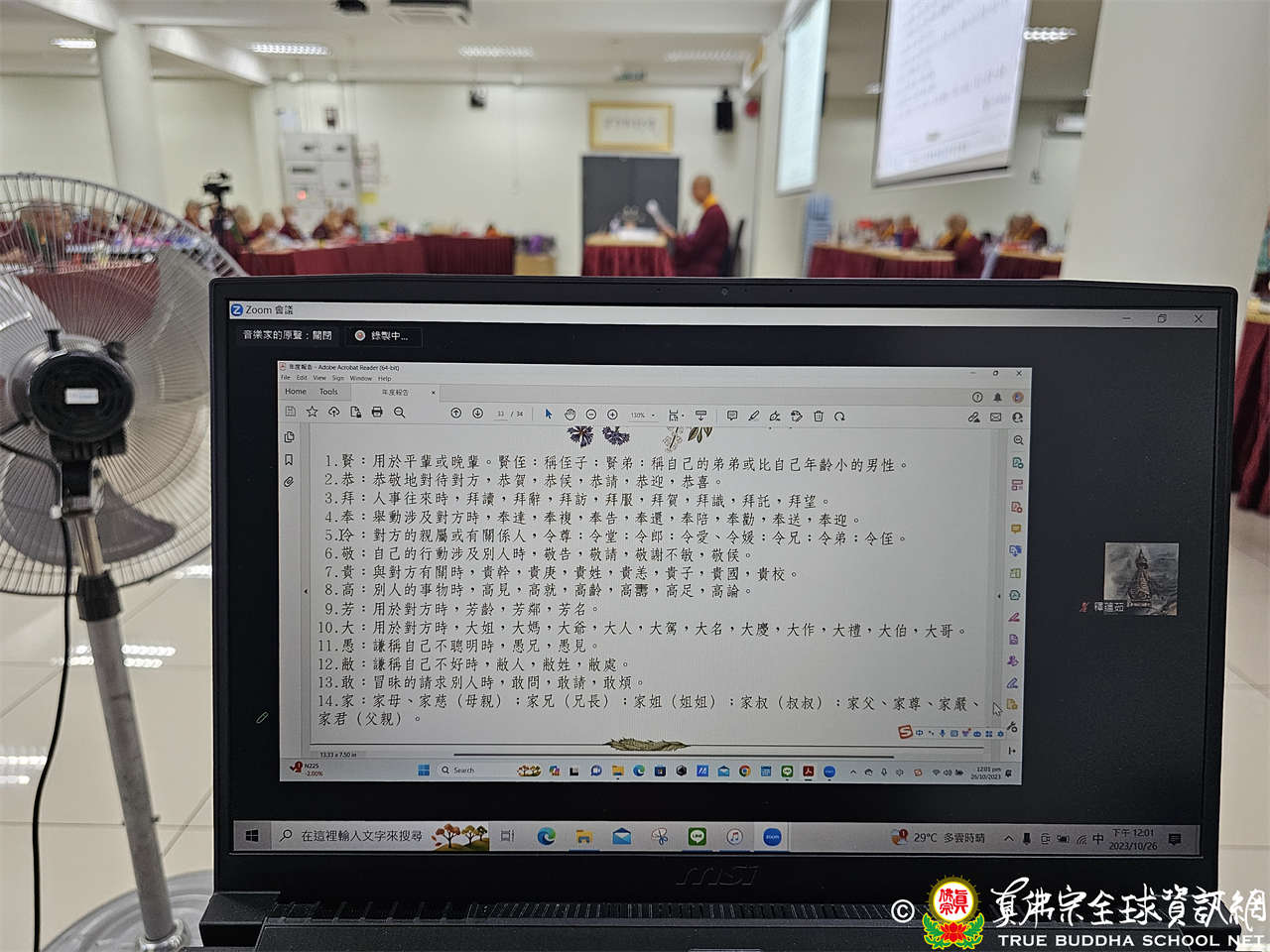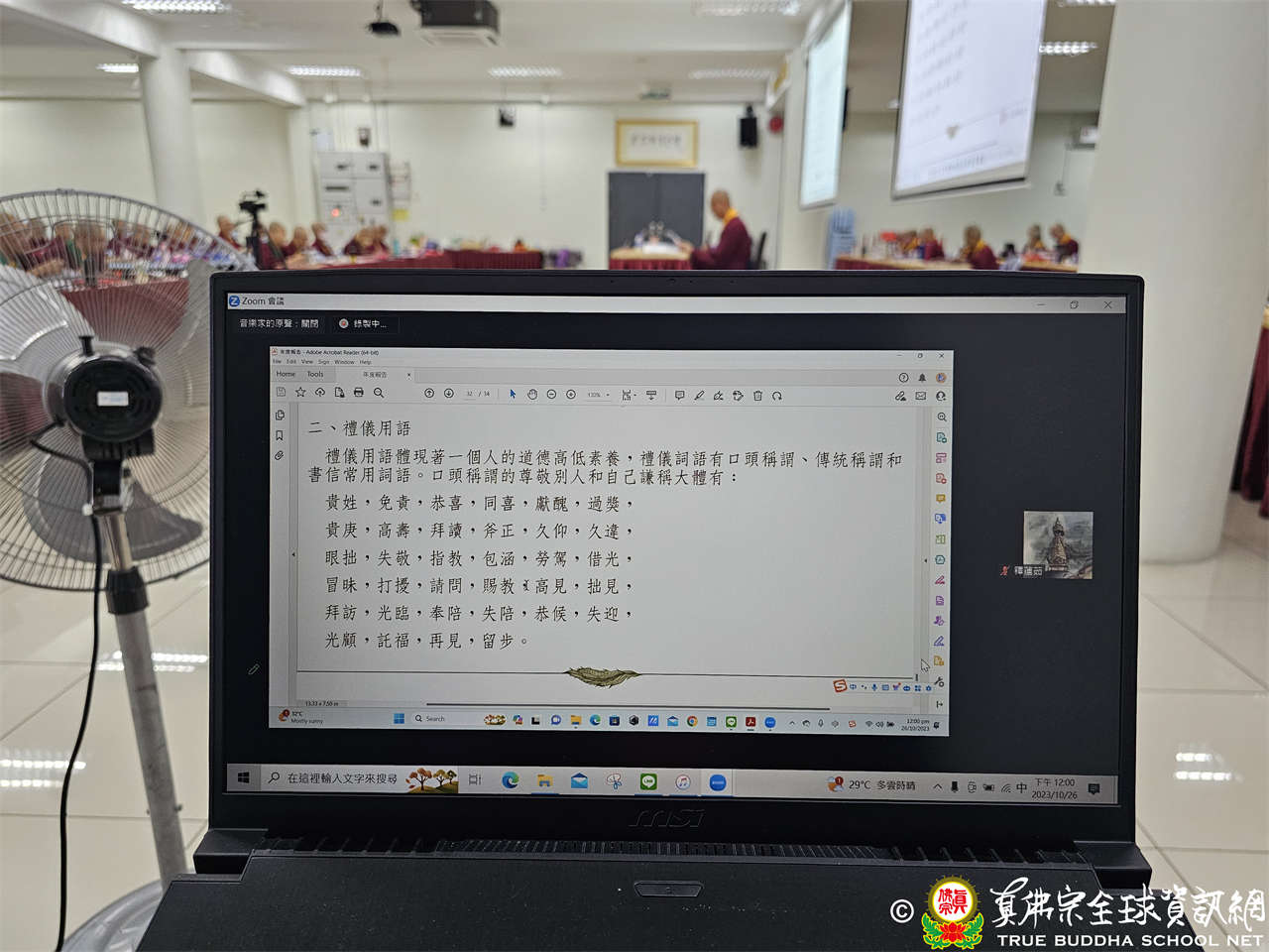 長老講授如此完整中國的禮法與典法,也讓我們了解原來禮法與典法有如此多樣性,有許多禮法是從小就耳聞的,卻不曾進一步的一一的解析,本次真的讓僧眾們學習到很多知識。