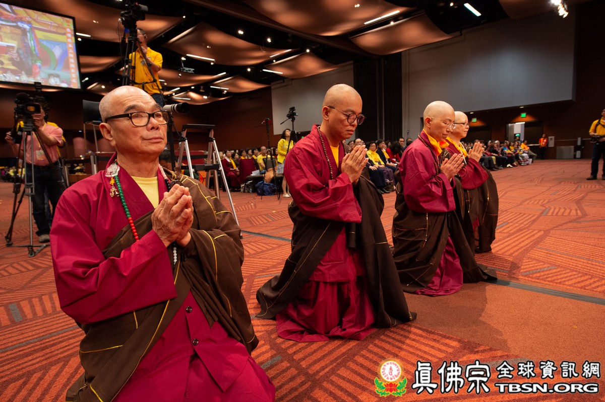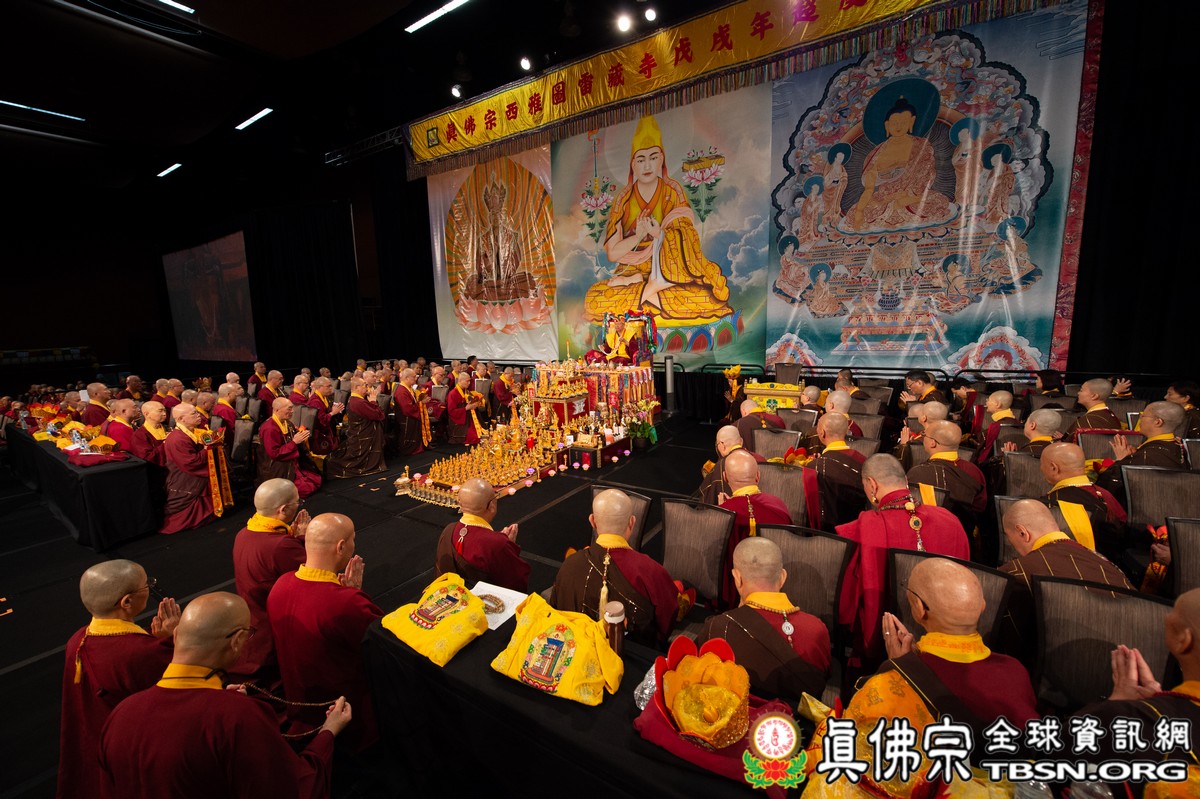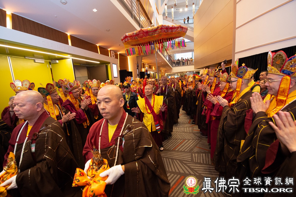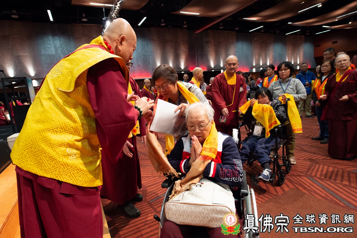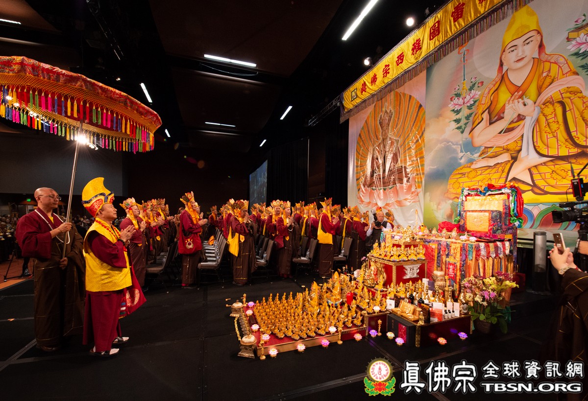 法會當日早上十點半,所有主祈者排著長長的人龍環繞會場,等候敬獻哈達,顯示出真佛弟子敬師重法的誠心。之後,聖尊立即開始為大眾簽書,此時會場播放著宗喀巴祖師與阿彌陀佛的莊嚴咒音。