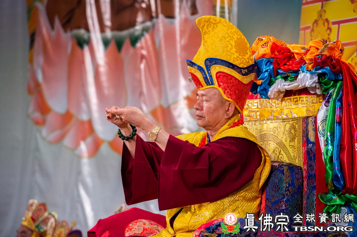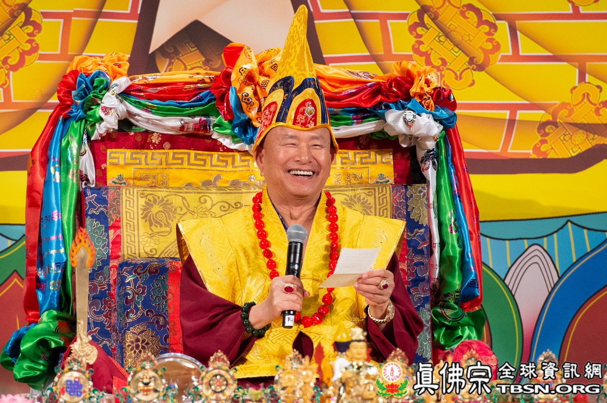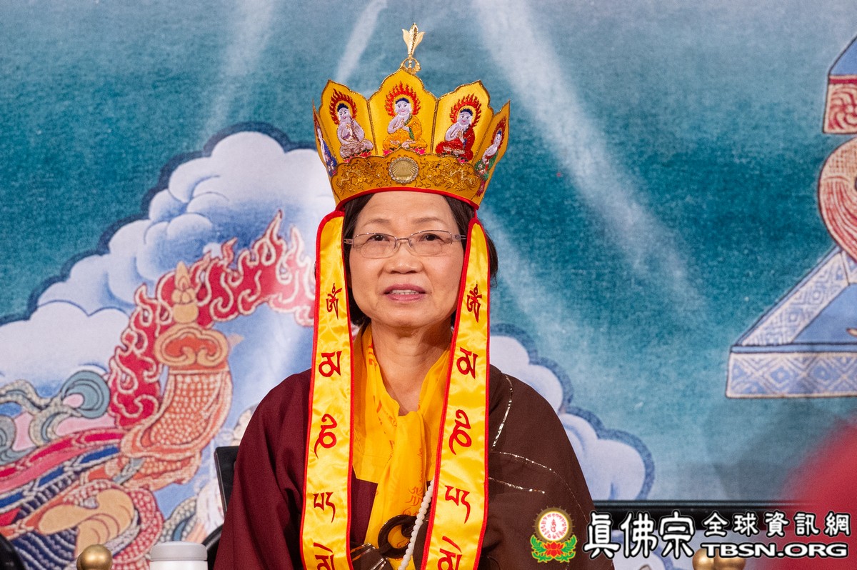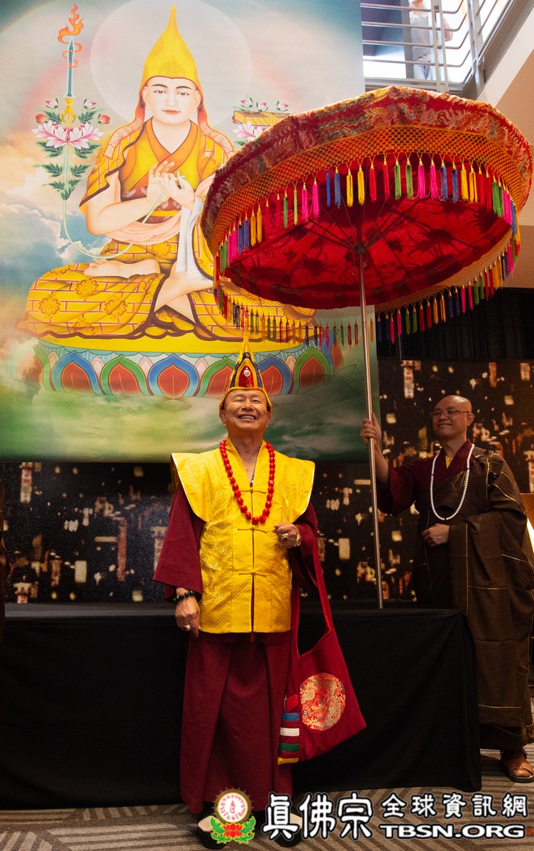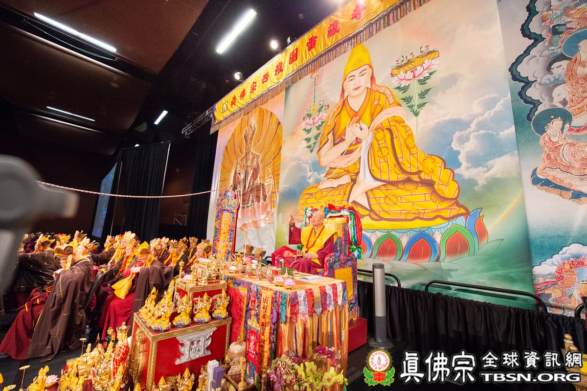 肅穆的法會儀軌圓滿結束後,是大眾殷切期盼的聖尊傳法開示。聖尊一開始提到在法會當中看到阿底峽尊者及宗喀巴尊者降臨法會。在多年前,黃教第一百世的甘丹赤巴法王來到西雅圖,賜給了師尊法王龍袍、灌頂瓶、金剛鈴杵、唸珠、手鼓,甘丹赤巴就是代表了宗喀巴祖師。