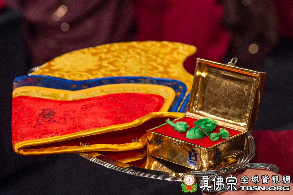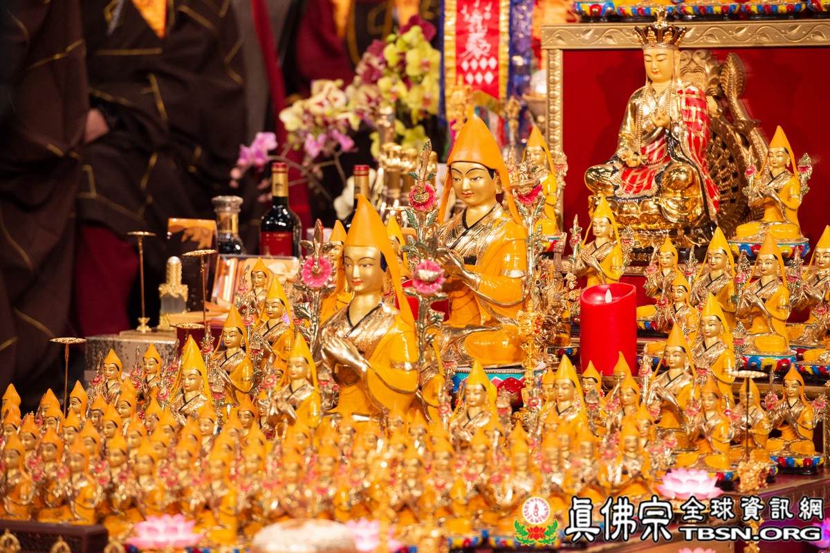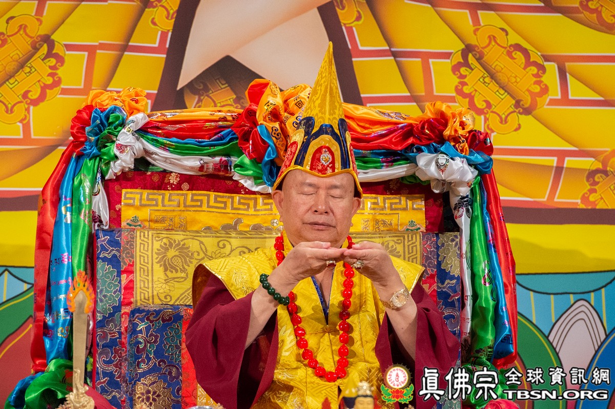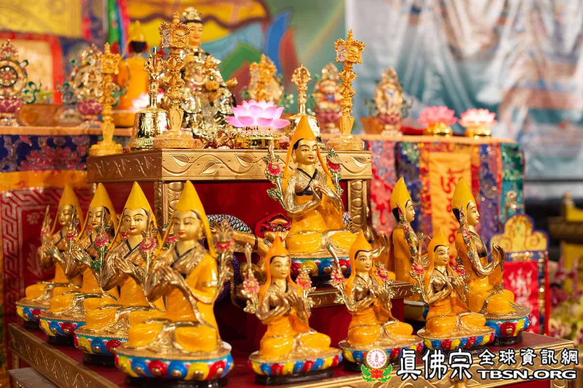肅穆的法會儀軌圓滿結束後,是大眾殷切期盼的聖尊傳法開示。聖尊一開始提到在法會當中看到阿底峽尊者及宗喀巴尊者降臨法會。在多年前,黃教第一百世的甘丹赤巴法王來到西雅圖,賜給了師尊法王龍袍、灌頂瓶、金剛鈴杵、唸珠、手鼓,甘丹赤巴就是代表了宗喀巴祖師。