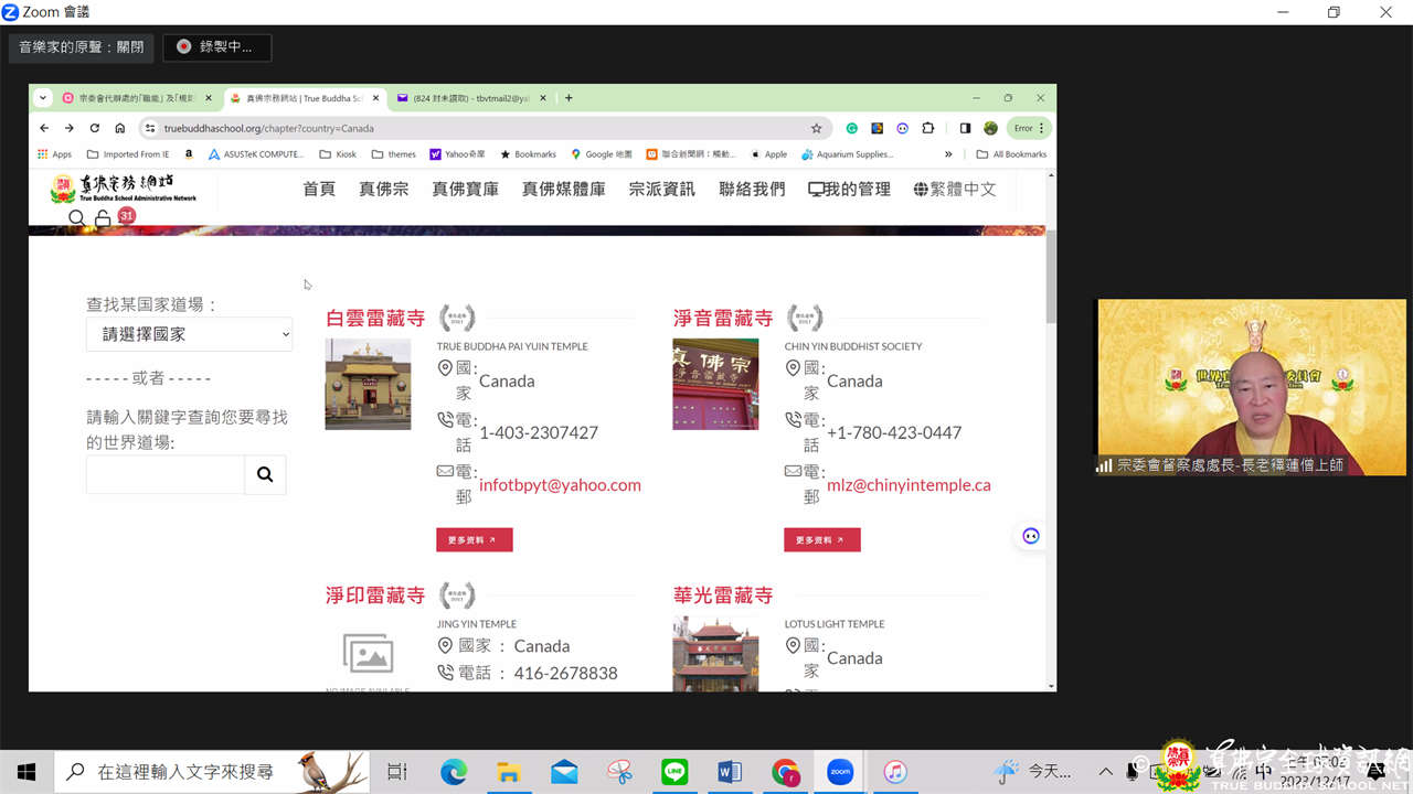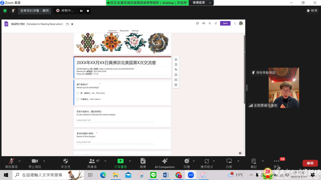 真佛宗「宗委會代辦處」首次線上交流會