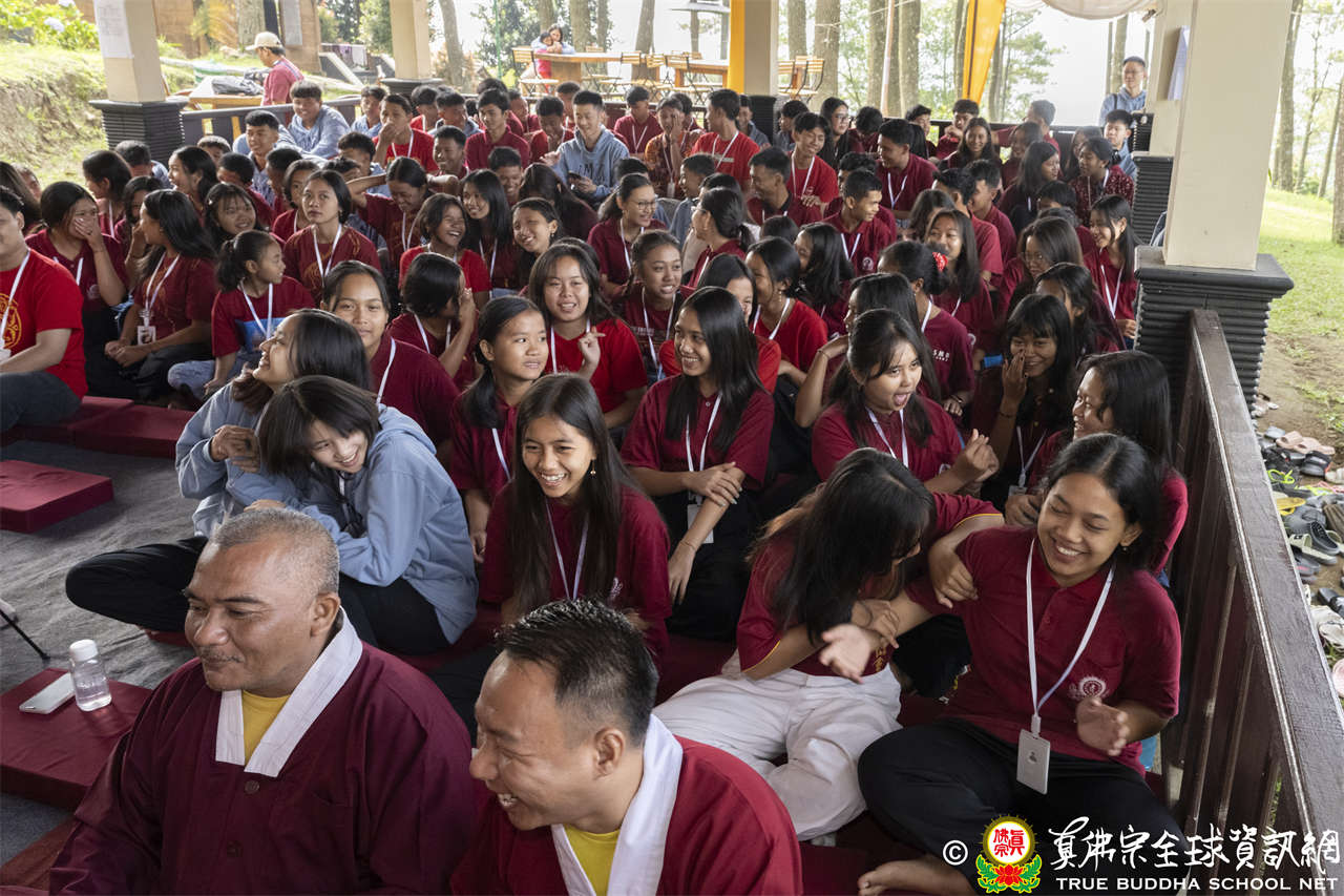 另外,令人欣喜的是本次是首度真青會跨國聯誼–印尼真青會與新加坡青年團。25日當天,新加坡青年團一行共16人,參與本次狂歡節。同時邀請真青會會長釋蓮茹教授師、副會長釋蓮竹教授師做佛法互動方享,由於印尼真青們多數不懂中文,所以由佩芬助教擔任即席口譯,讓印青們了解分享內容,這也是二位教授師第一次以這樣的上課模式。