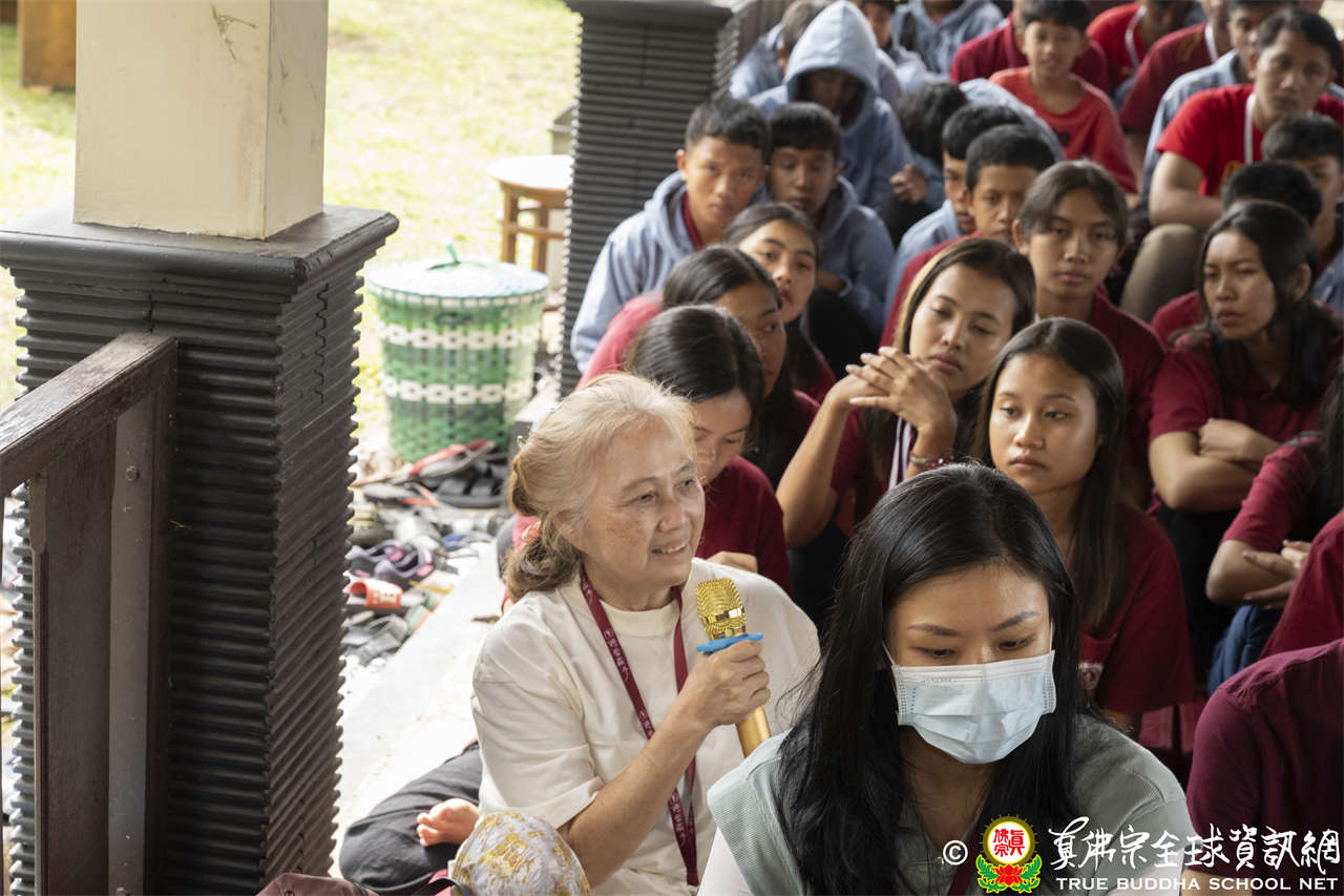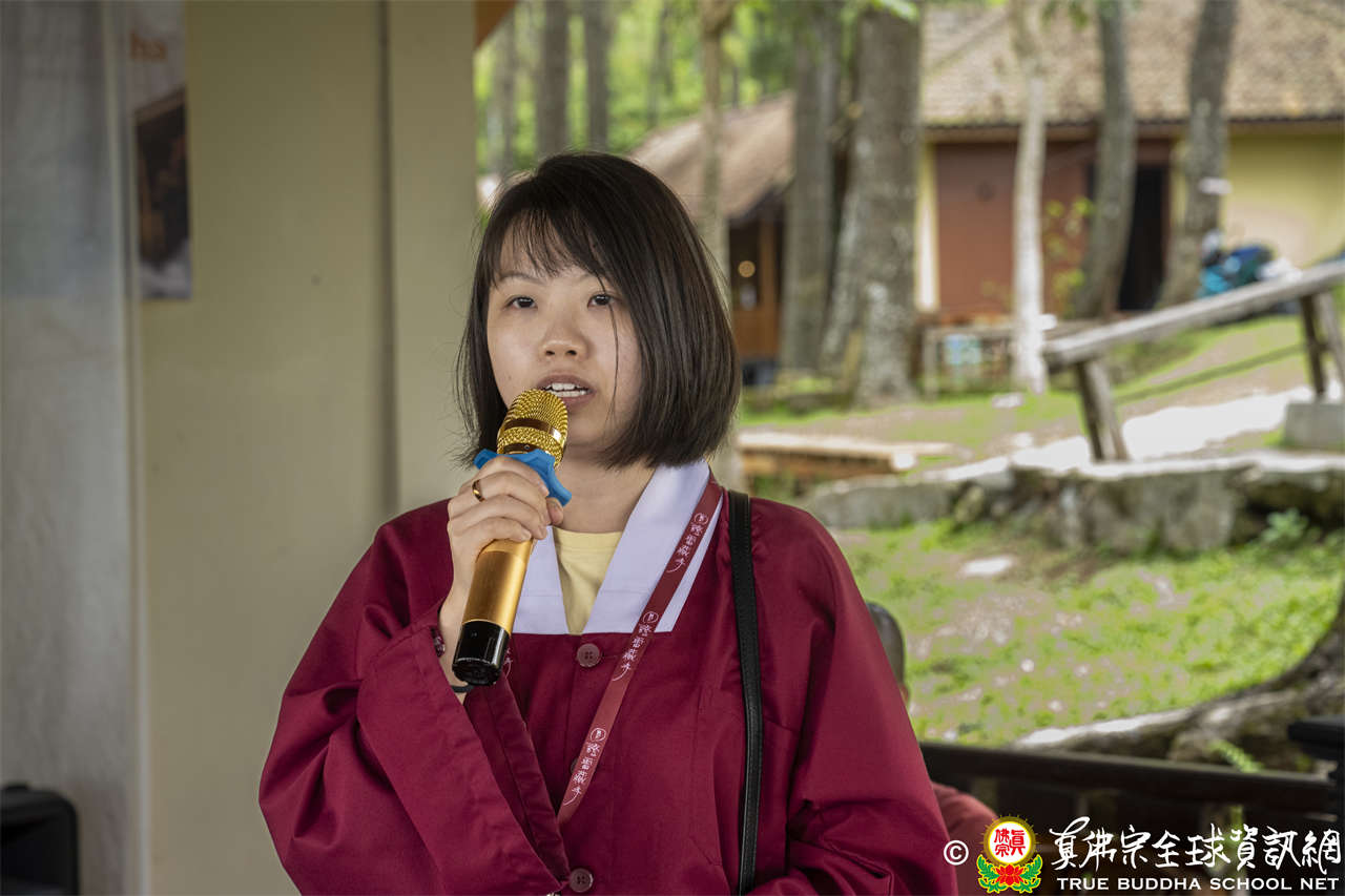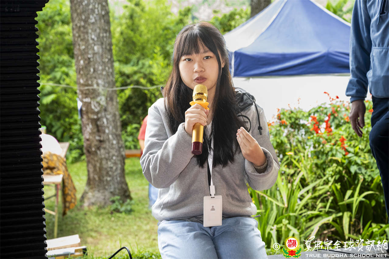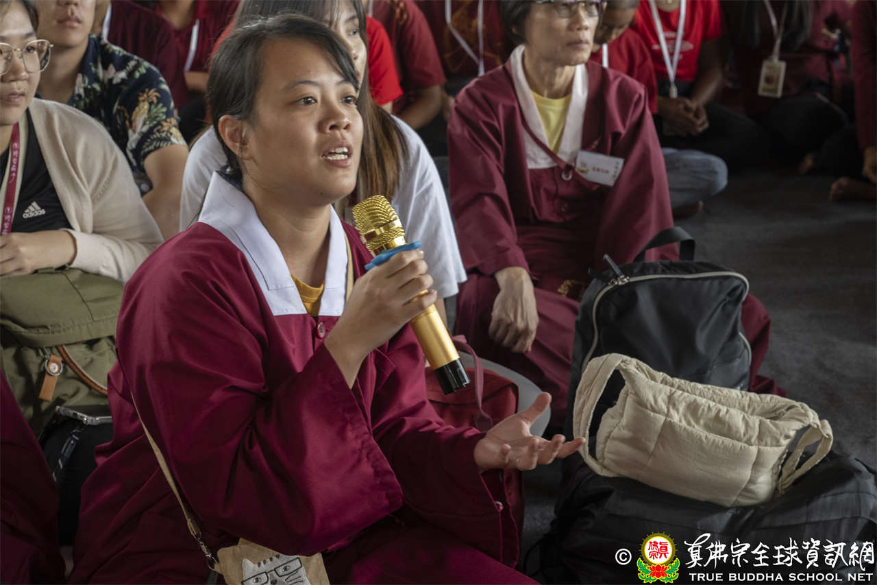 首先教授師以簡單的小活動,頓時讓在場的真青們點燃熱情。佛法分享內容主要是讓青年們明白何謂因果、何謂六道輪迴、何謂慈悲喜捨,佛教徒是依著慈悲來對待所有的人事物,教授師以其自身與真青同齡時的經驗分享,博得在場大眾哈哈大笑。