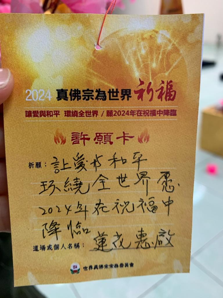 感謝馬來西亞中道堂為世界祈福 點一盞燈,為世界燃起希望。 點一盞燈,讓世界更明亮。 讓愛與和平 環繞全世界 願2024年在祝福中降臨 宗委會文宣處之2024真佛宗為世界祈福活動圓滿舉行! 感謝馬來西亞中道堂的參與! 每一份參與,都是一份心力。每一份心力,都為這世界帶來光明。真佛宗道場萬分用心的準備與參與,每一位參與持咒的同門,都令人感動!2024,因為有您們的愛,就有了曙光!