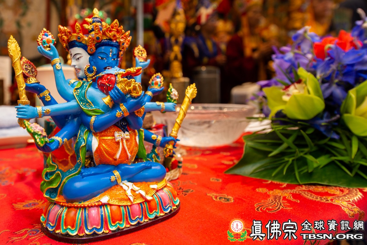 蓮生法王開示時首先傳授密集金剛念誦法。昨天的法會首傳宗喀巴祖師念誦法,而宗喀巴以密集金剛為最大的護法,另外下星期日的護摩主尊大威德金剛亦是宗喀巴祖師的護法。