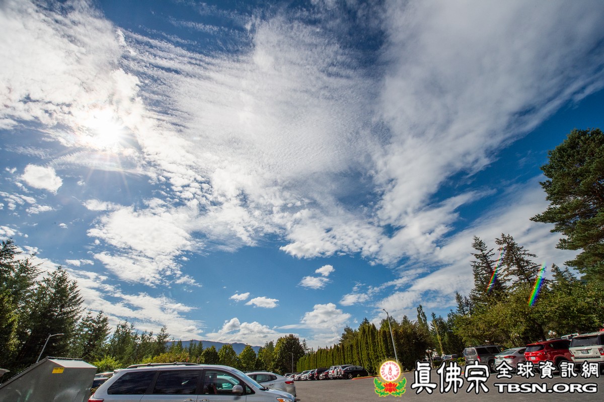 2018年9月9日(星期日),雖然西雅圖天氣預報是個陰雨天,但到了彩虹雷藏寺,卻是大日普照,更有同門在上雷藏寺途中照到非常罕見的彩虹雲,讓人想起當初蓮生法王盧勝彥因跟著彩虹走而找到了彩虹雷藏寺這七星落地的大地理,真是巧妙無比。由於昨天是秋季大法會,今天來參加護摩法會的人潮絡繹不絕,千里迢迢來到真佛宗的聖地,大家猶如新年團拜般的喜氣洋洋,臉上都是掩不住的喜悅。