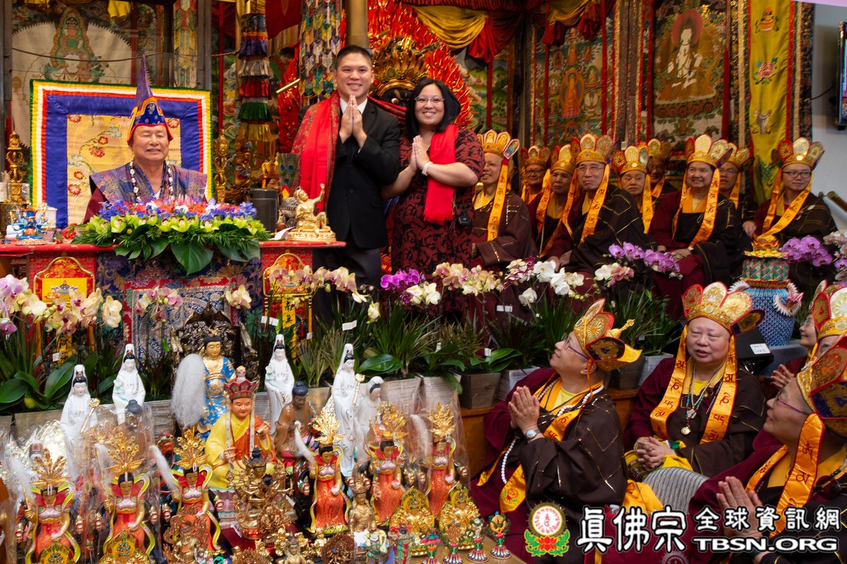 隨著,法王也為一對雷藏寺的義工進行福證儀式,巧的是一對新人皆是柔道高手,已經是教練級,法王幽默的提醒他們在家千萬不要用柔道,惹來哄堂大笑。