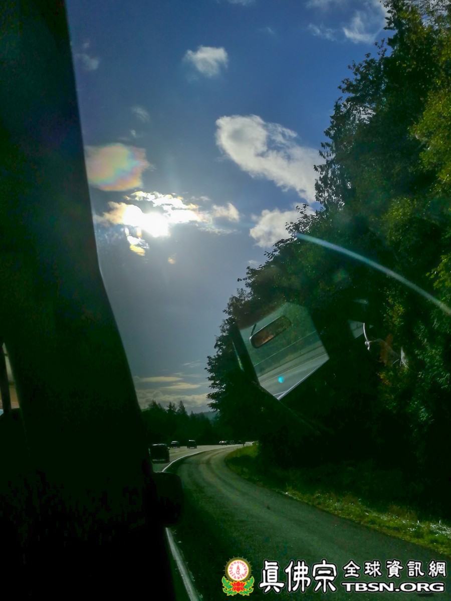 無比精彩珍貴的開示以後,蓮生法王為大眾賜授密集金剛念誦灌頂,法會吉祥圓滿。回程時許多同門都照到帶有彩虹光的太陽和密集的祥雲,又是一個奇妙的異象!