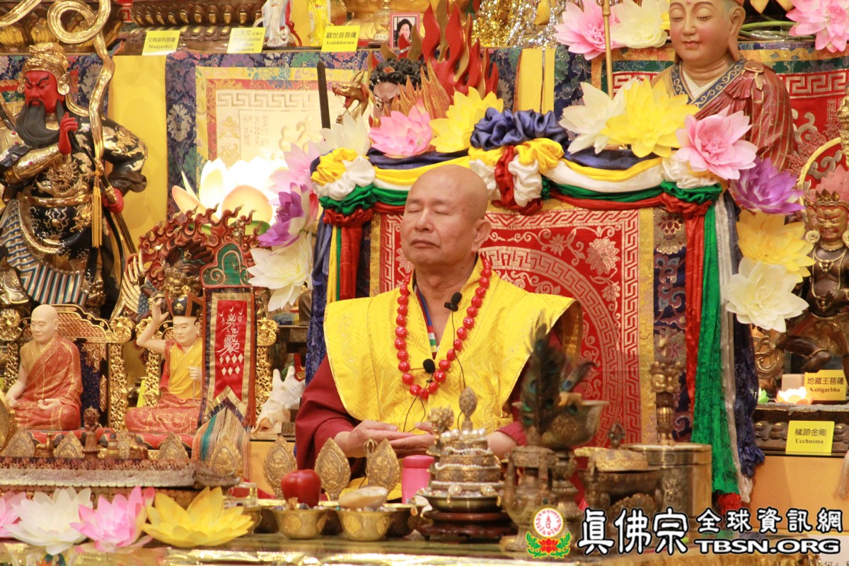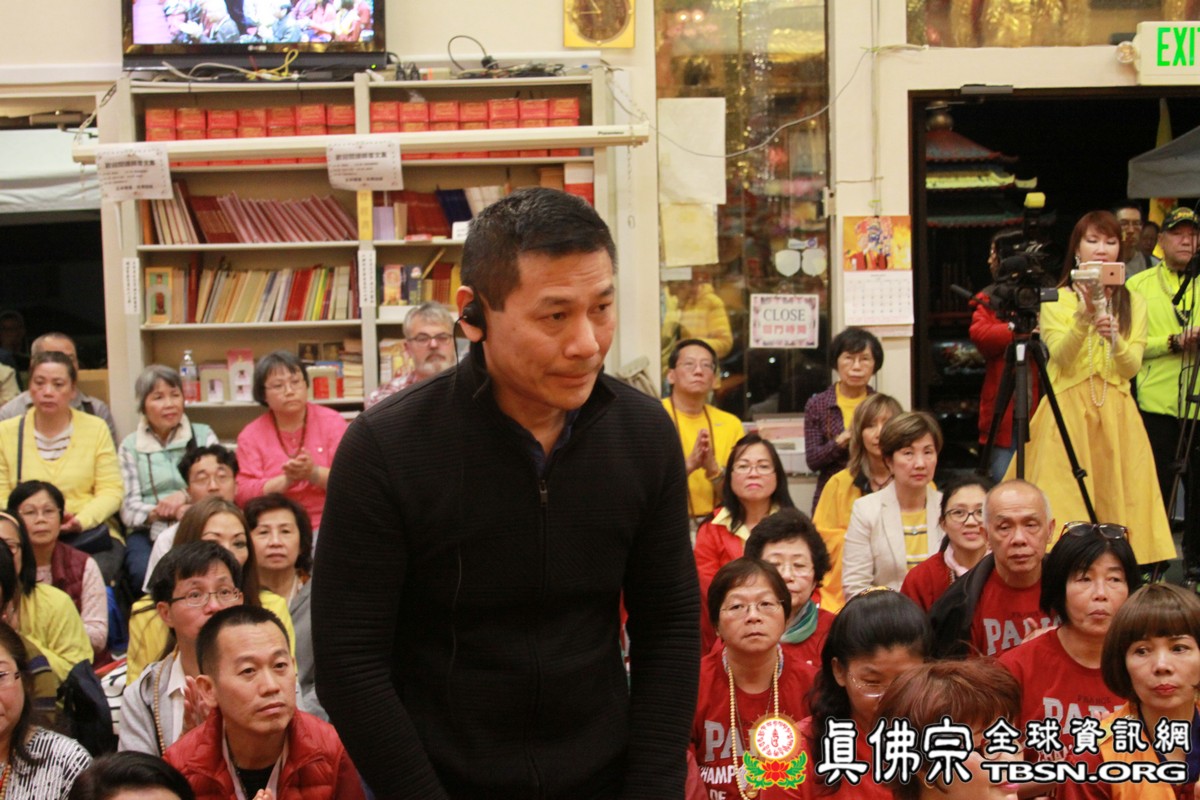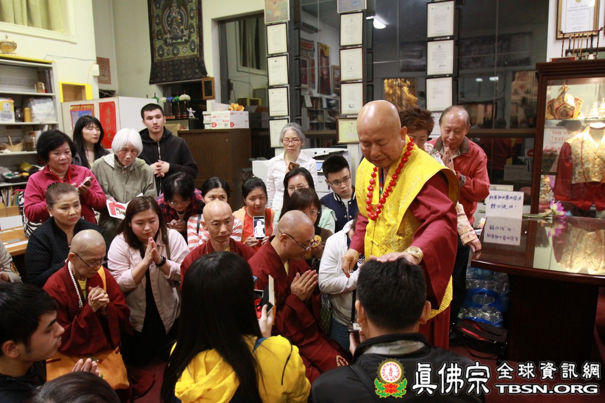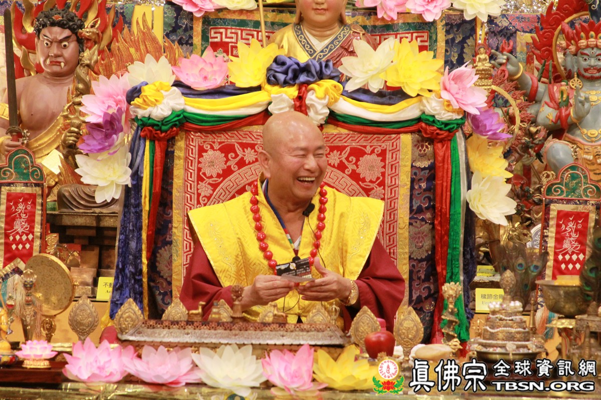 精彩圓滿的開示結束後,聖尊與大眾一起唱誦佛號,並為求皈依的信眾賜受灌頂、加持大悲咒水,以及開光佛像,臨行前還為大眾摩頂加持。求摩頂加持的信眾,人潮排到寺外的圓環,可以完全感受到真佛弟子們踴躍護持根本上師及虔誠重法的心。感恩根本上師再次傳授無上殊勝大法,利益無數眾生。