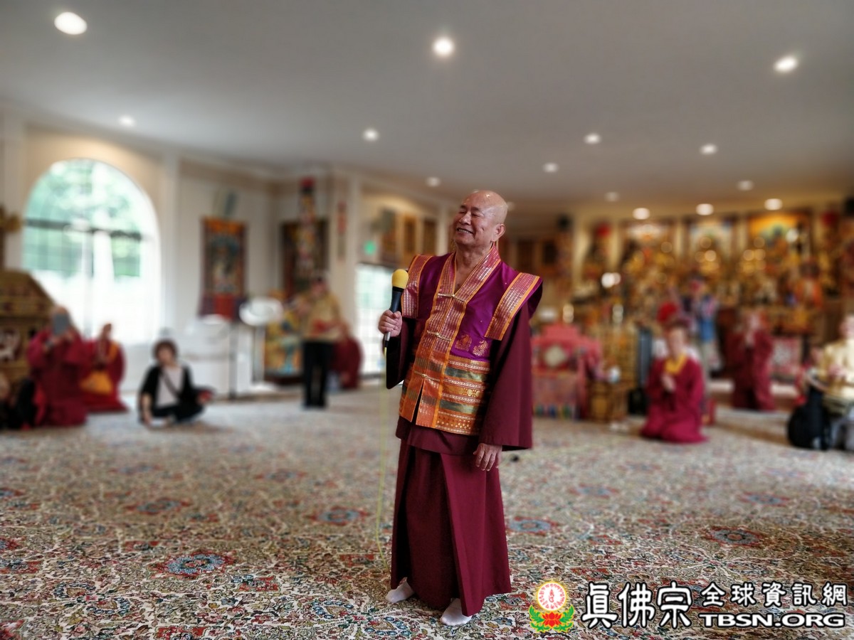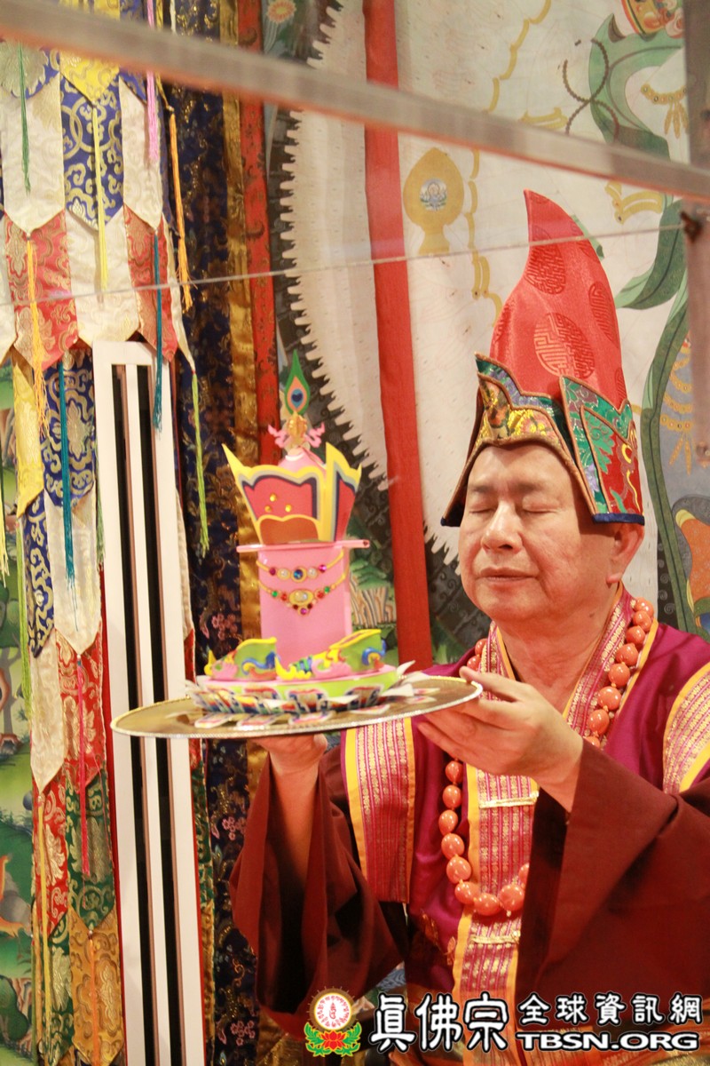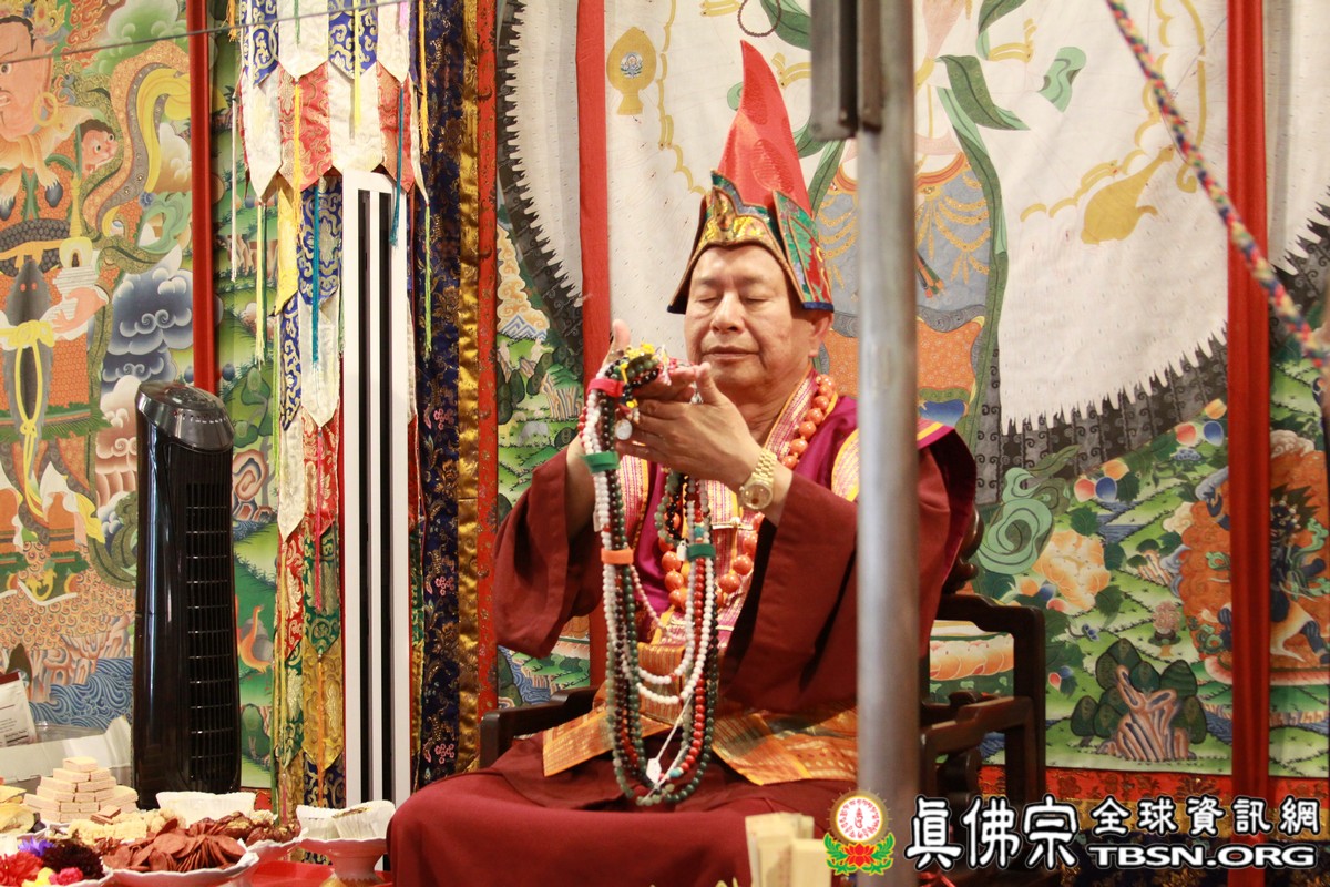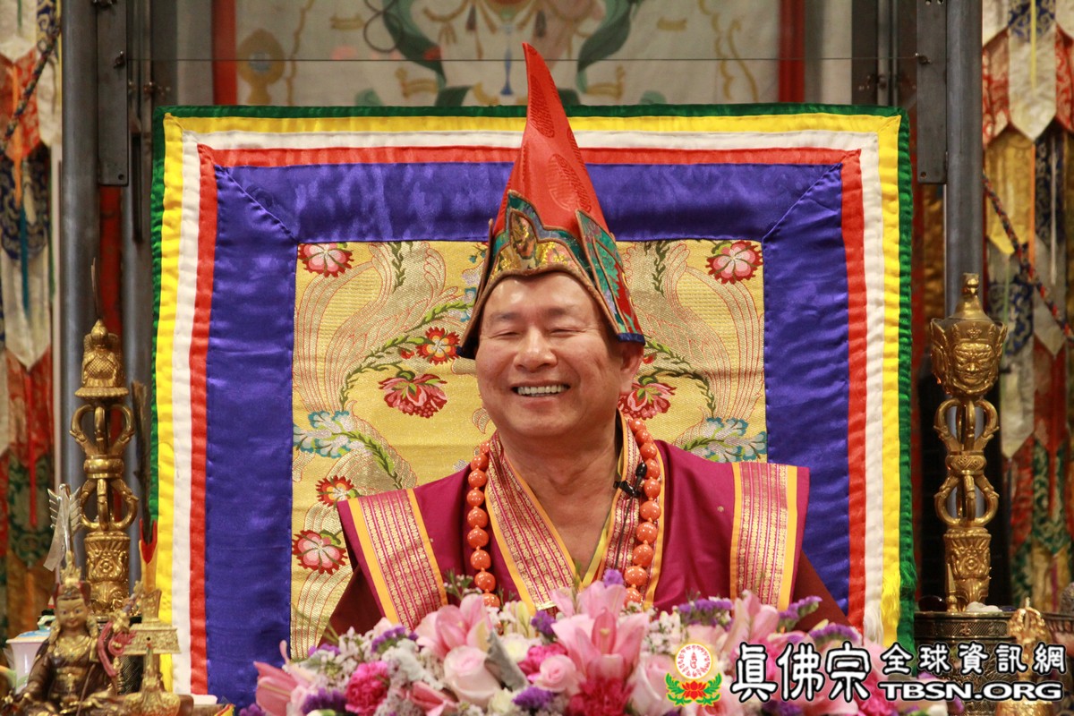 接著下午三時,真佛宗根本傳承上師無上法王蓮生活佛,主持「蓮華生大士護摩大法會」,並講授《道果》。