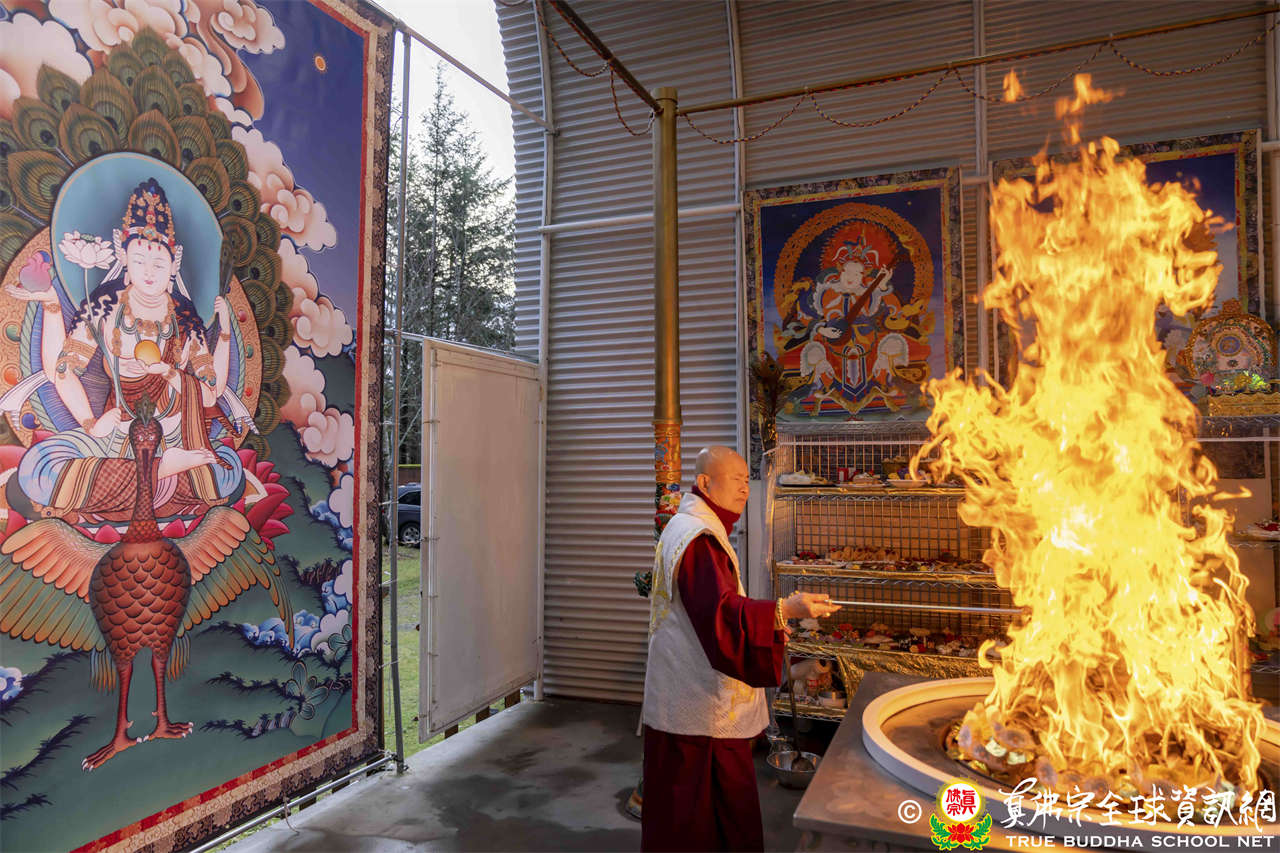 2024年1月7日蓮生活佛蒞臨彩虹雷藏寺主持「孔雀明王」護摩法會,並開講《維摩詰經》。法王通知下週是「觀世音菩薩」護摩法會,觀世音菩薩有很大的願力,與娑婆世界很有緣分,所度眾生也最多,無人不識無人不曉。整個西藏都是觀世音菩薩的道場,人人都念祂的心咒「嗡嘛呢唄咪吽」。最近西雅圖寒冷下雪,相比西藏人常數月經年,匍匐於沙石冰雪上朝拜,一路餐風露宿,一步步走向心中聖地,弟子們應該珍惜現在,把握每次主祈的護摩法會。