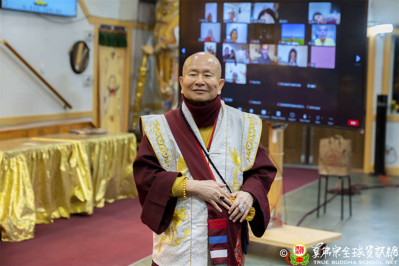 最後法王移駕到Zoom前與弟子們互動,弟子們誠摯地感恩師尊開示,向法王傾訴心中的感恩與敬意,法王慈悲賜授現場與會大眾「孔雀明王法」灌頂,法會圓滿結束。