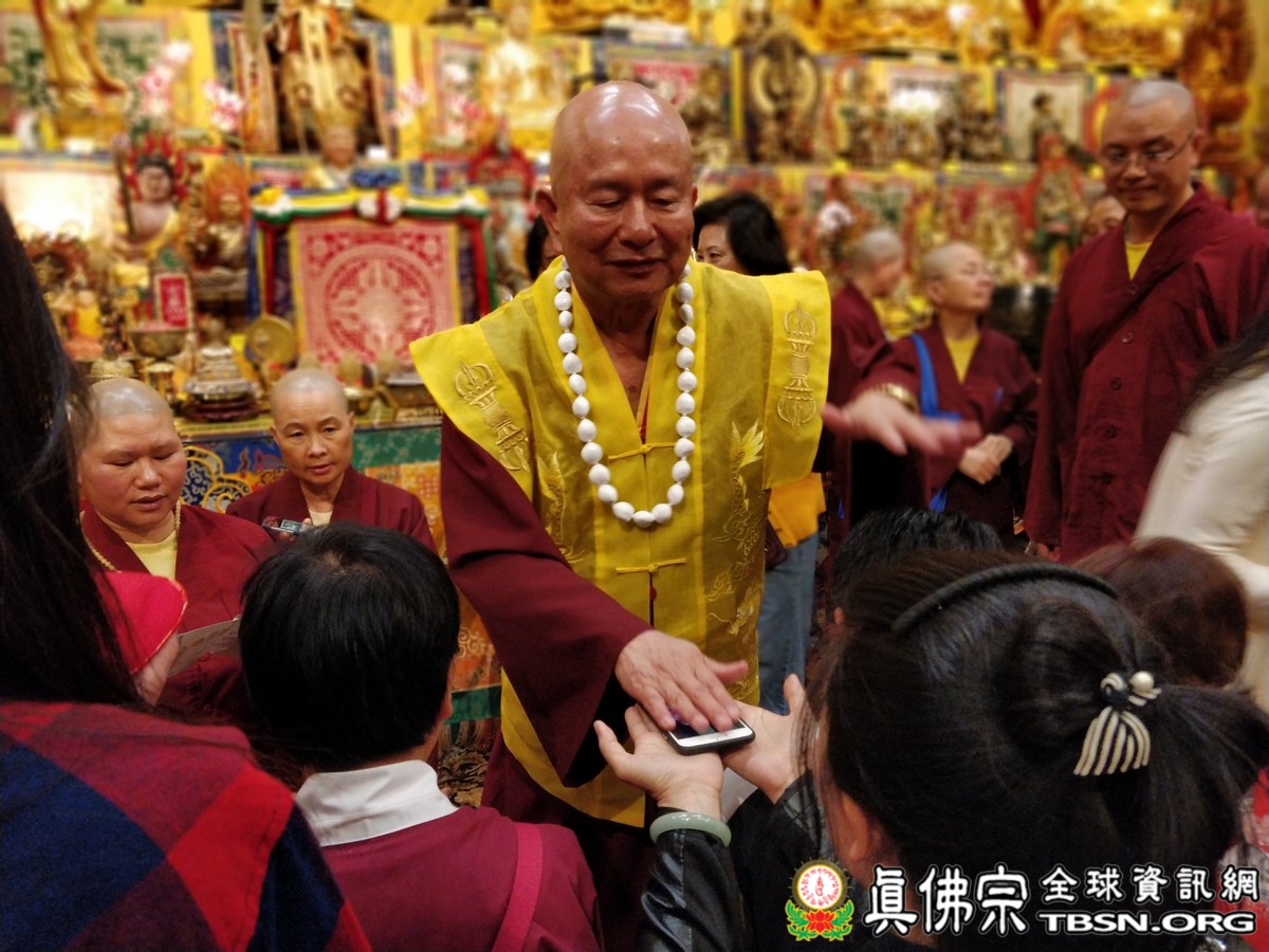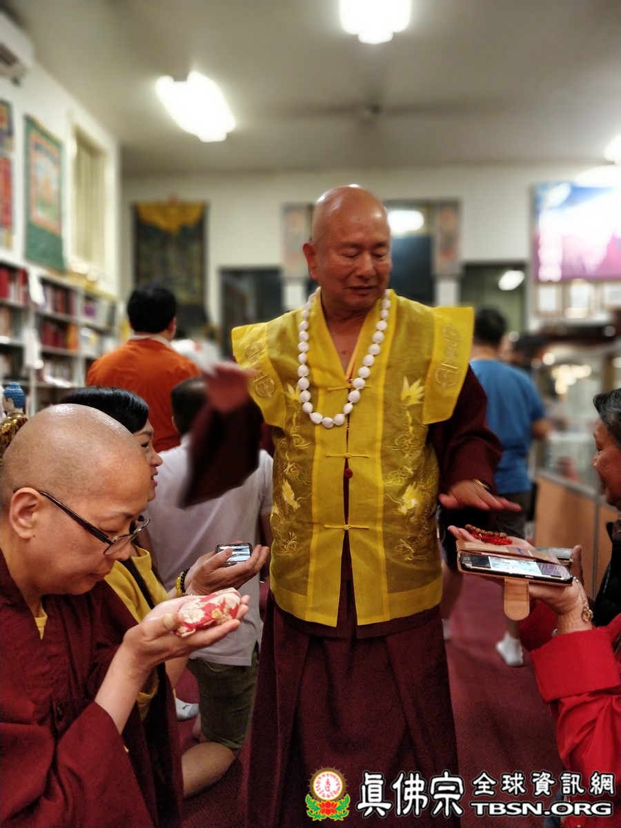 開示完後,聖尊與大眾一起唱誦佛號,並為求皈依的信眾賜受灌頂、加持大悲咒水,以及佛像開光,臨行前為大眾摩頂加持。感謝聖尊、師母一同出席本週六的同修。師佛教示,弟子眾等依教奉行。