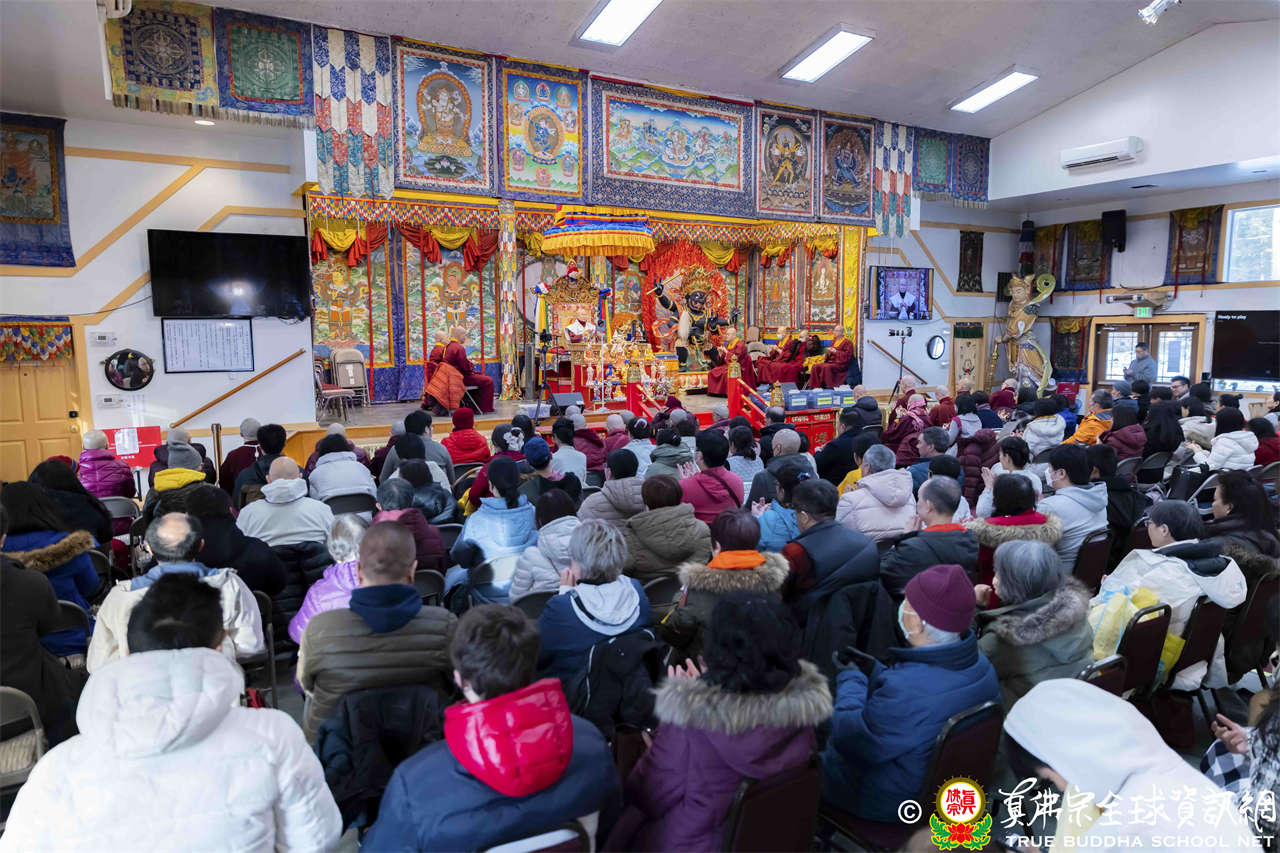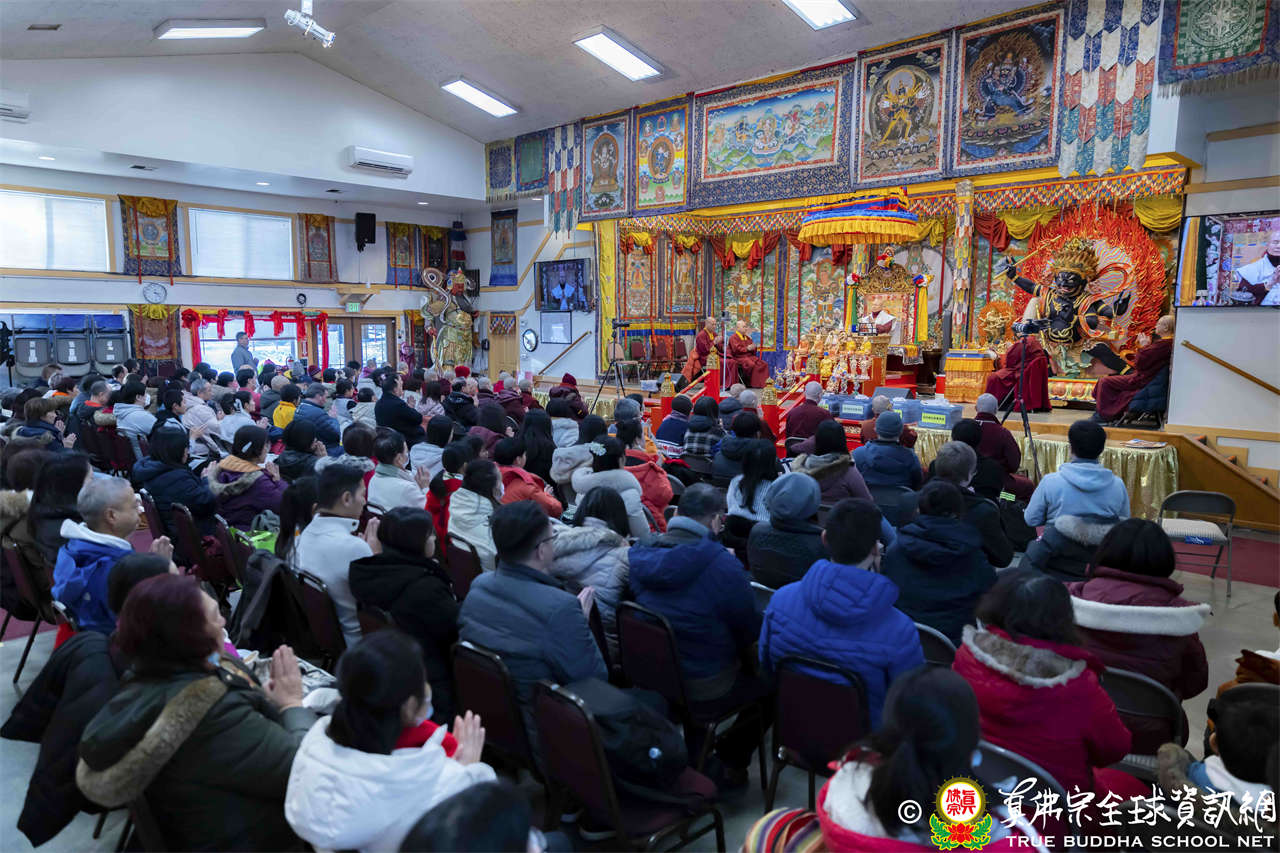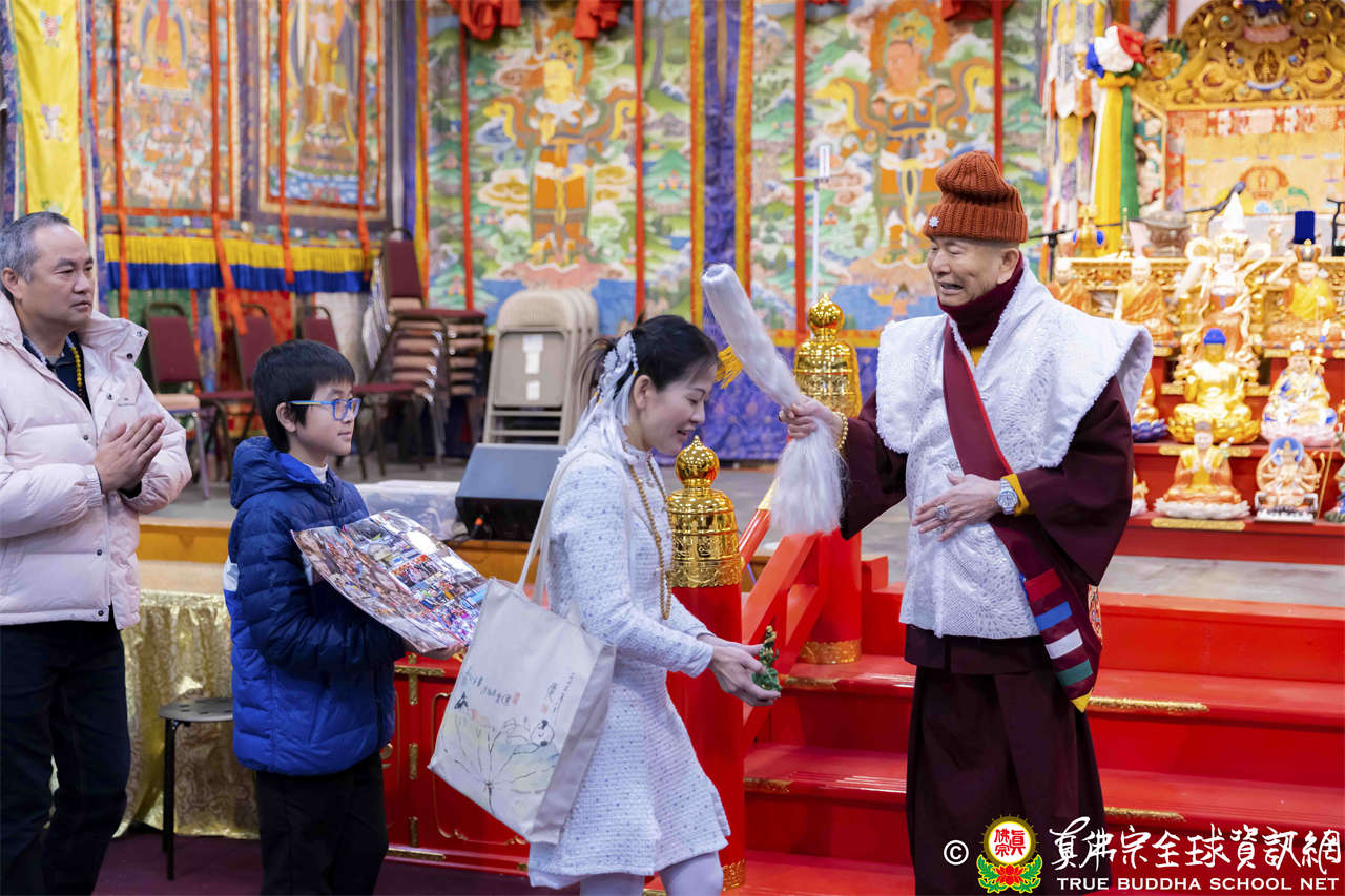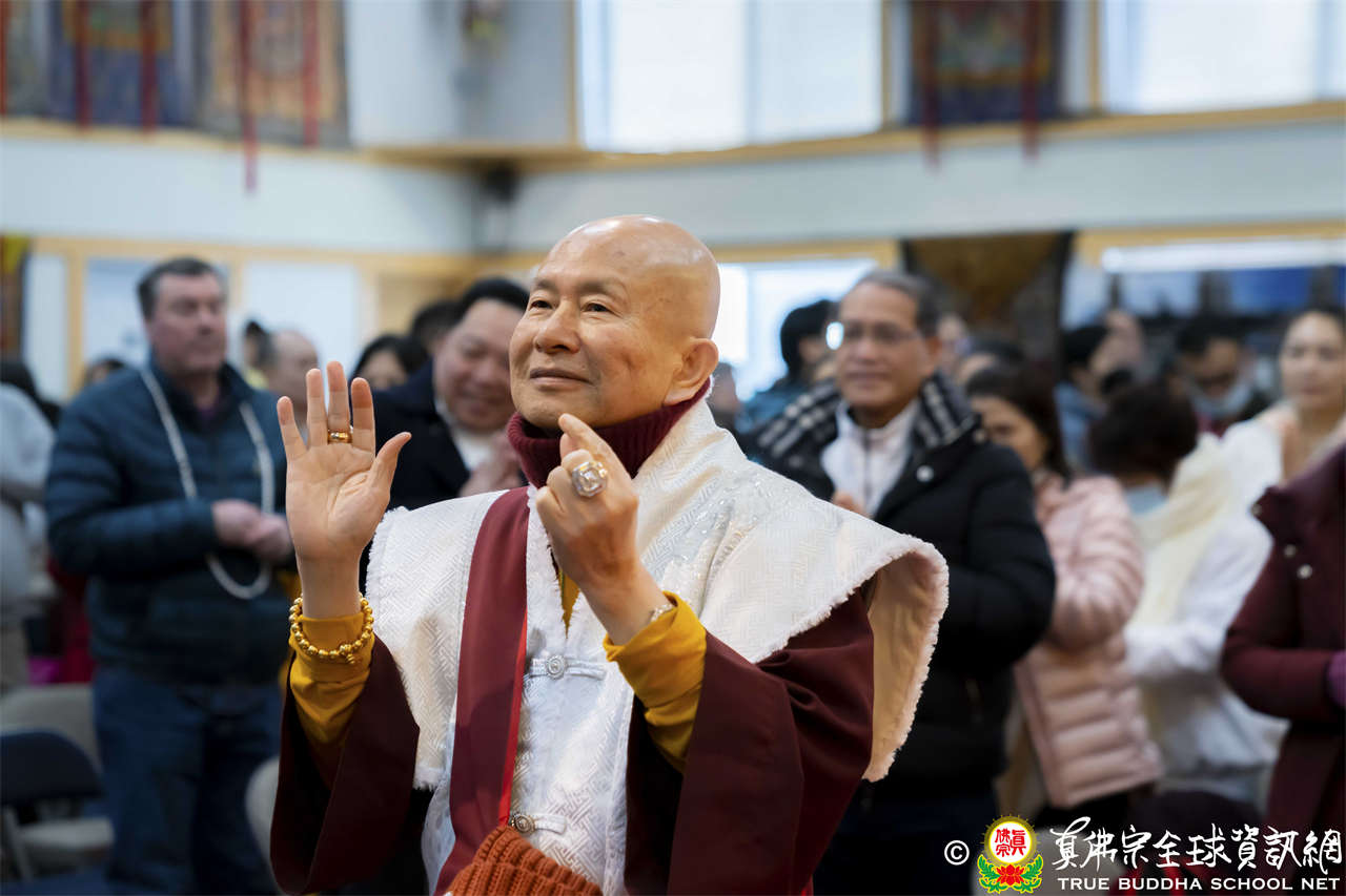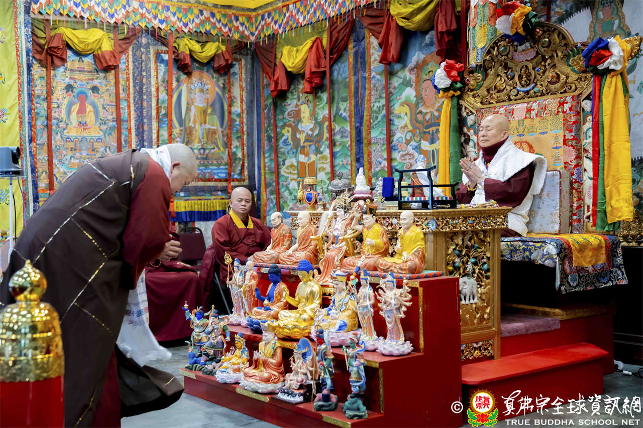法王開示至此,護摩法會圓滿結束。接著,法王與線上的弟子打招呼,並爲現場出席者賜授觀世音菩薩法灌頂。