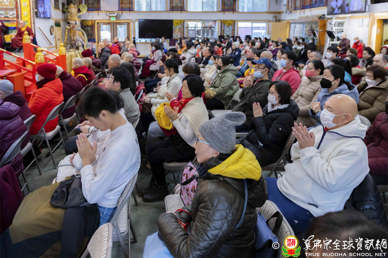 「法沒有住在哪裡,你如果認爲,彩虹雷藏寺裡才有佛,那就不對了,因爲佛無所不在,佛性無所不在。你以爲厠所污穢,佛大概不會去,但厠所裡一樣在。到處都是上帝,哪裡都是教堂。在這邊(美國)有很多的小教堂,或祈禱室,要祈禱就去教堂或祈禱室,其實也不用,任何地方都可以祈禱。在厠所裡也可以祈禱,難不成厠所裡面沒有上帝耶穌嗎?你進來西雅圖雷藏寺,哇!好多佛菩薩,禪定很好。但是你在你家的厠所裡禪定,也沒有差別。如果你執著教堂、佛相、雷藏寺,這也是一種執著。」