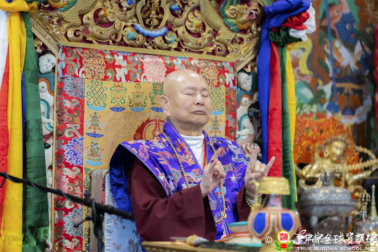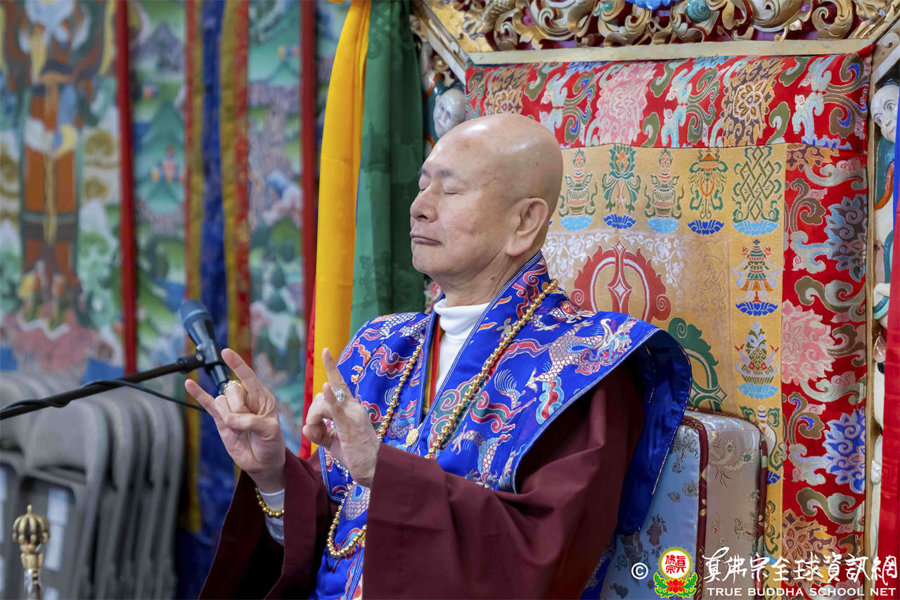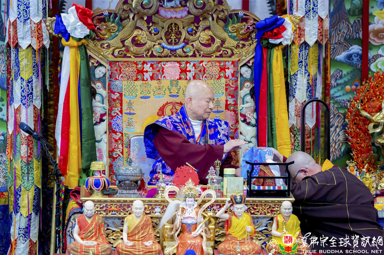 法王繼續解釋:佛是無來去的,也是因無所得而得。如《金剛經》的:過去心不可得、現在心不可得、未來心不可得。過去已過,現在正成為過去,未來也在成為現在,三際一如。就算是現在擁有的一切,都會變成沒有。悟到得不到什麼,就煩惱解脫。因為什麼都得不到,剩下的都布施眾生:財施、法施、無畏施。法王最後強調:因無所得,才是無上正等正覺。佛性沒有帶業是很重要的,人生在世就是為了酬業,懺悔過去業障,證得無所得,自然不會造業。開示結束後,法王與zoom上弟子互相問候,賜授現場與會大眾「大力金剛法」灌頂。法會圓滿結束。