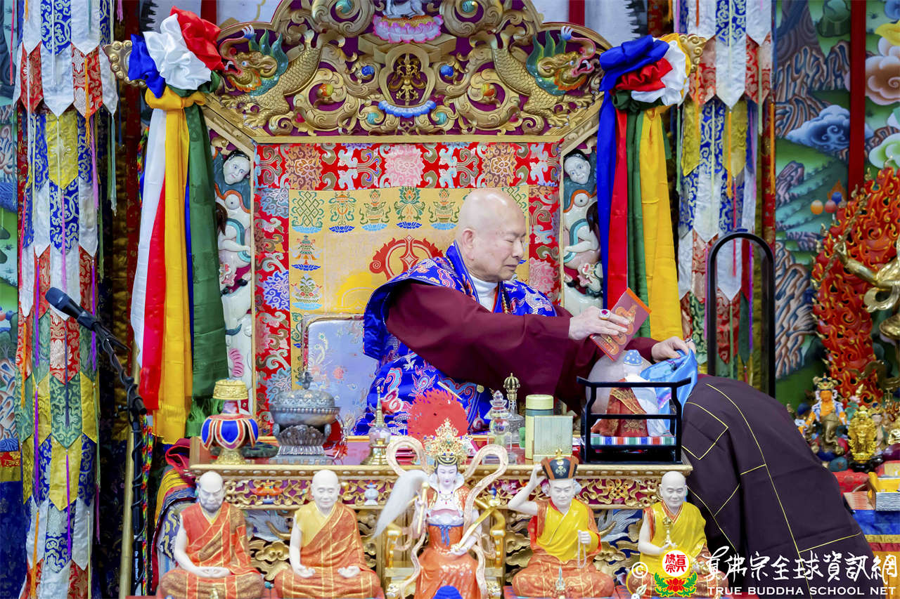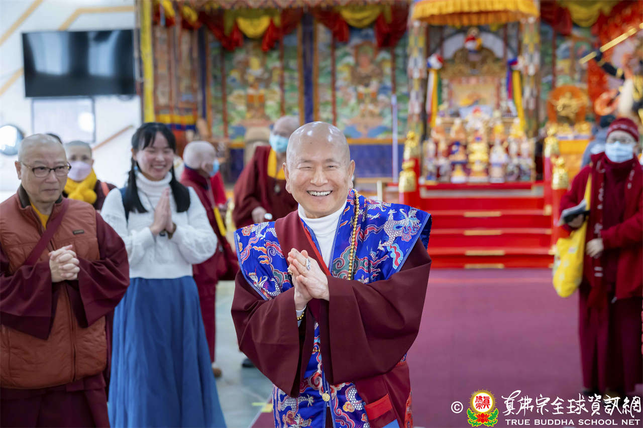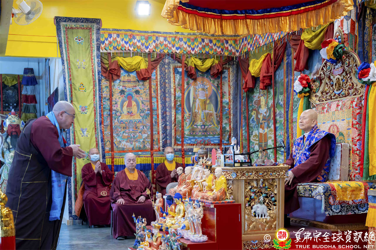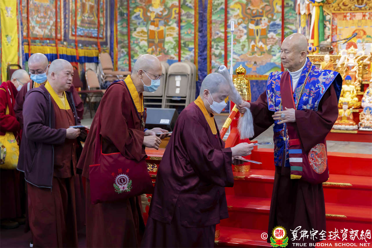法王繼續解釋:佛是無來去的,也是因無所得而得。如《金剛經》的:過去心不可得、現在心不可得、未來心不可得。過去已過,現在正成為過去,未來也在成為現在,三際一如。就算是現在擁有的一切,都會變成沒有。悟到得不到什麼,就煩惱解脫。因為什麼都得不到,剩下的都布施眾生:財施、法施、無畏施。法王最後強調:因無所得,才是無上正等正覺。佛性沒有帶業是很重要的,人生在世就是為了酬業,懺悔過去業障,證得無所得,自然不會造業。開示結束後,法王與zoom上弟子互相問候,賜授現場與會大眾「大力金剛法」灌頂。法會圓滿結束。