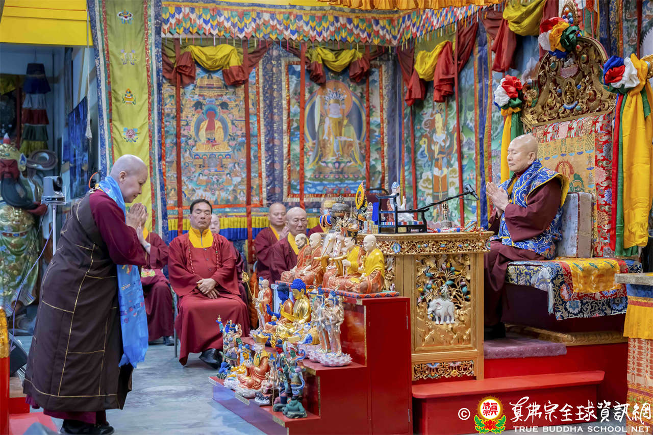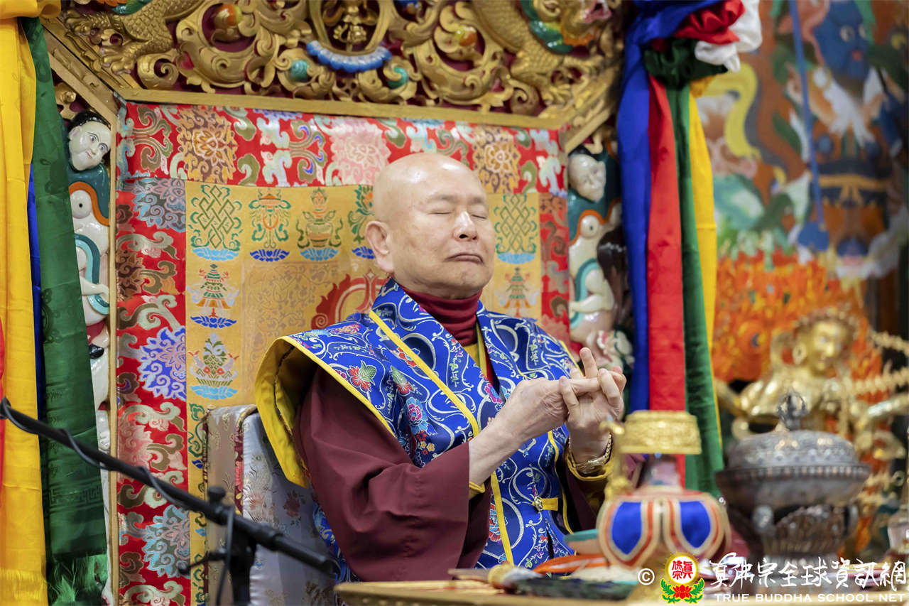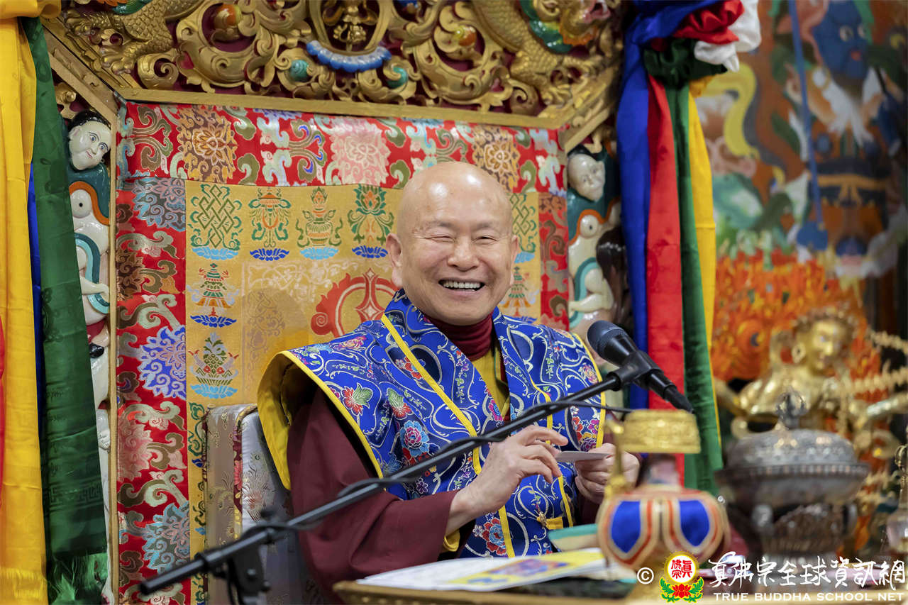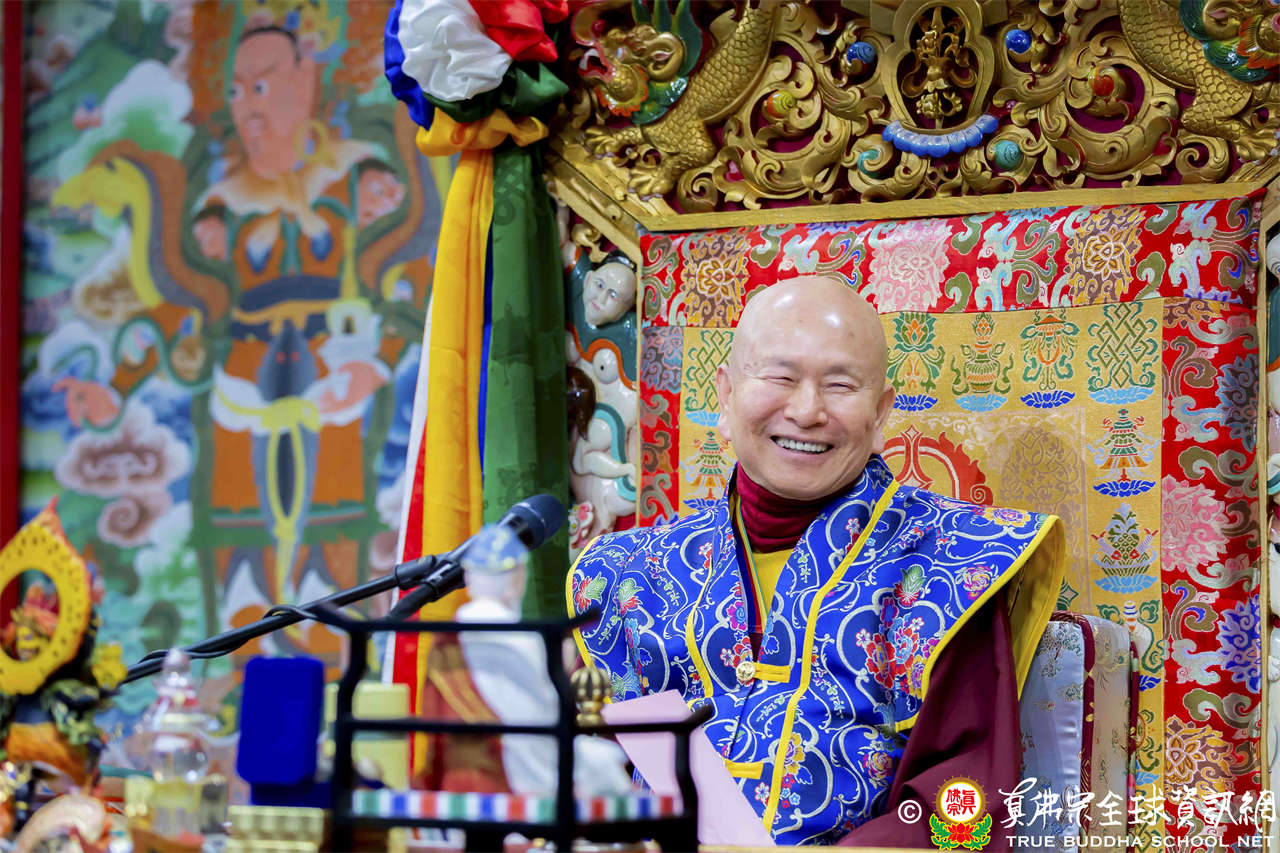 接著法王繼續講解《維摩詰經》〈佛道品第八〉:「…現於訥鈍,而成就辯才,總持無失;示入邪濟,而以正濟度諸眾生;現遍入諸道,而斷其因緣;現於涅槃,而不斷生死。文殊師利,菩薩能如是行於非道,是為通達佛道…」