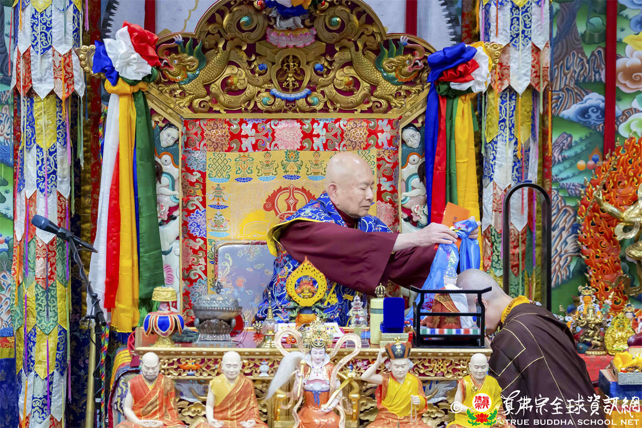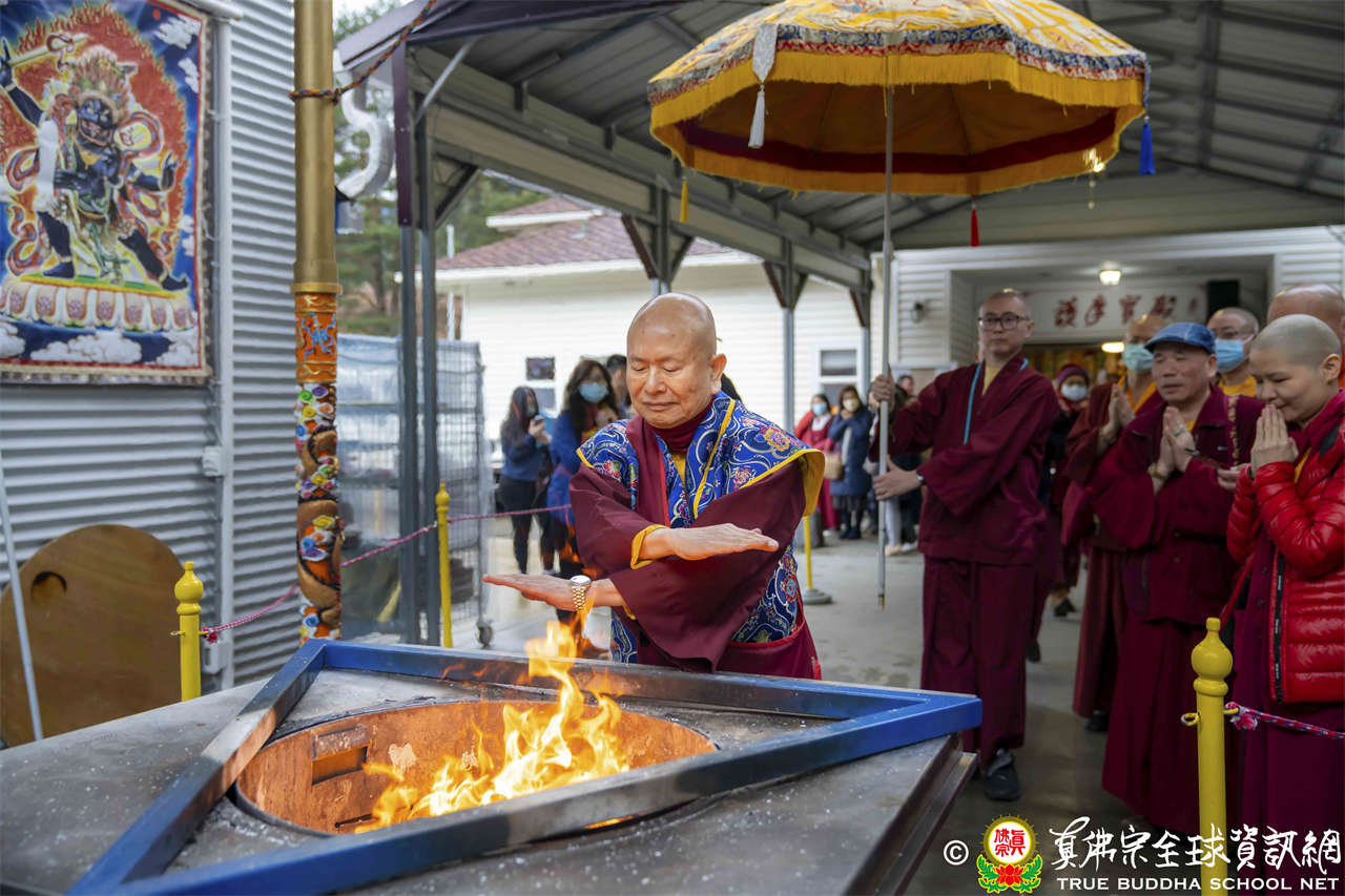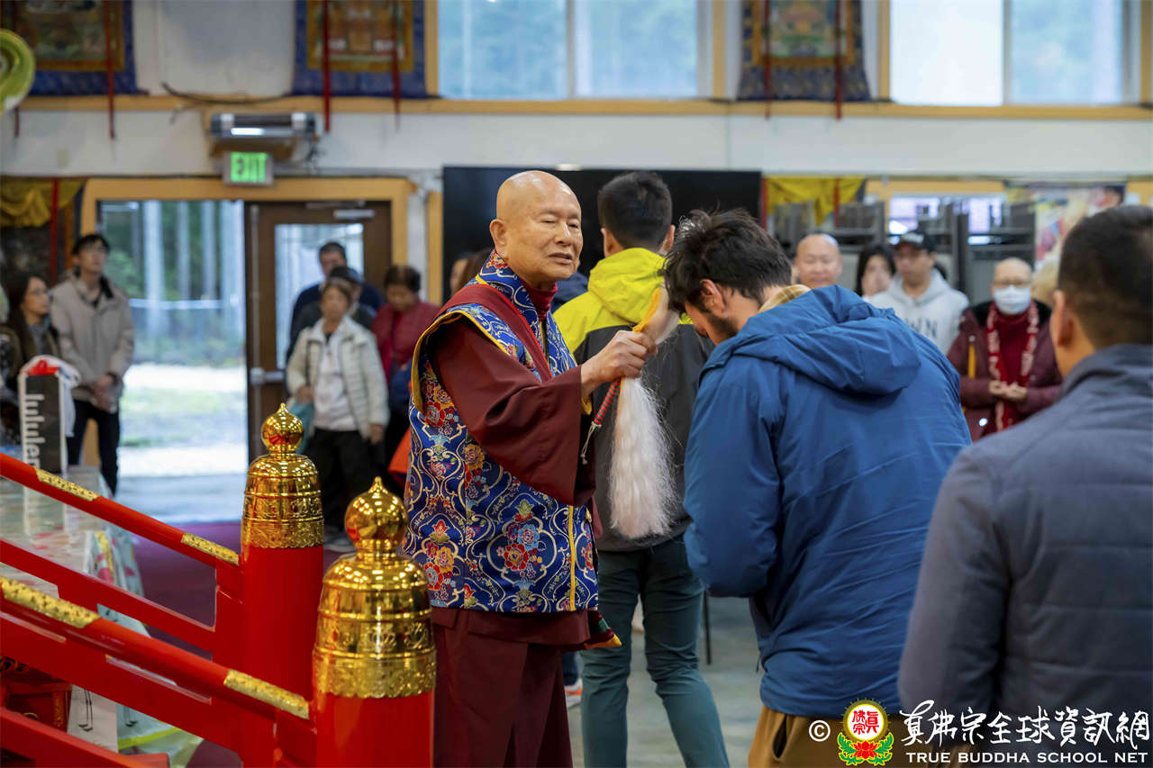 法王開示至此,護摩法會圓滿結束。接著,法王與線上的弟子打招呼,並爲現場出席者賜授穢跡金剛法灌頂。