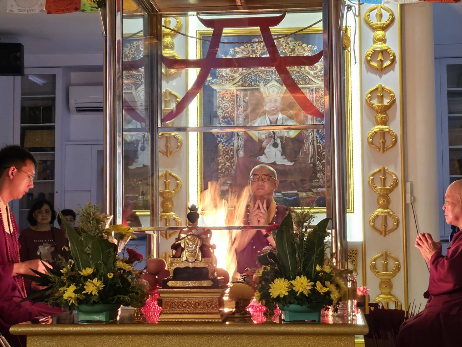 釋蓮碤上師於2024年4月21日在馬來西亞傳律雷藏寺主壇專壇「請佛住世瑤池金母護摩」,迴向師佛: