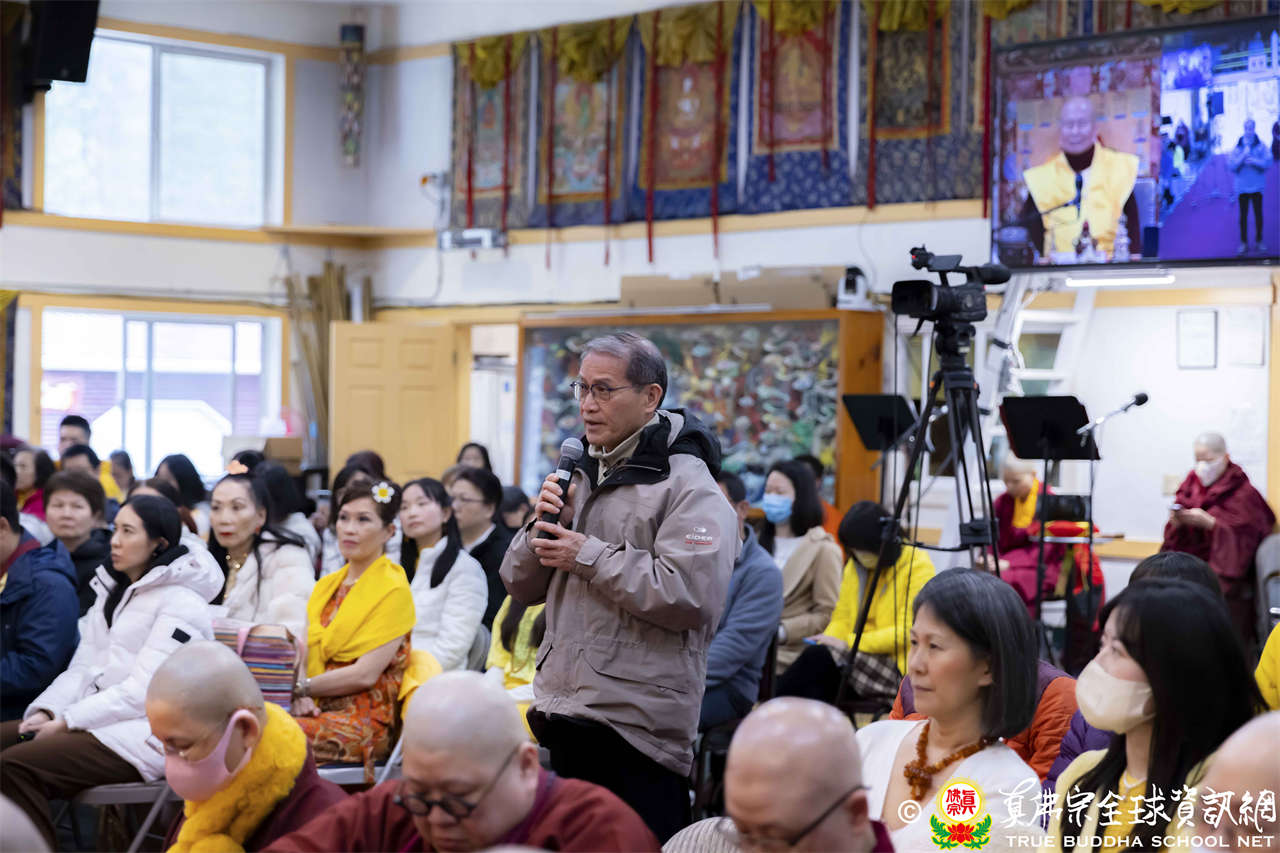 聖尊最後講了一個深具寓意的笑話:「小明問小狗,怎樣才能像你這麼開心呢?小狗講:忘!忘!忘!」聖尊接著説,「事實上會煩惱,就是因爲不能忘。你一定要忘掉,過去的垃圾全部倒掉。忘掉淨空,這樣子才能夠普現色身,才能夠出現本尊,看見上師。」