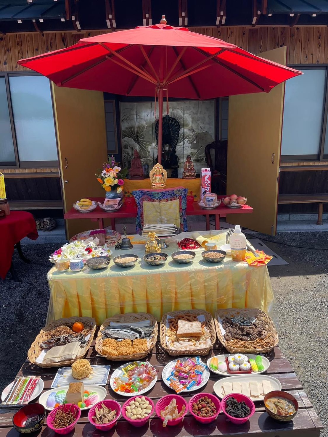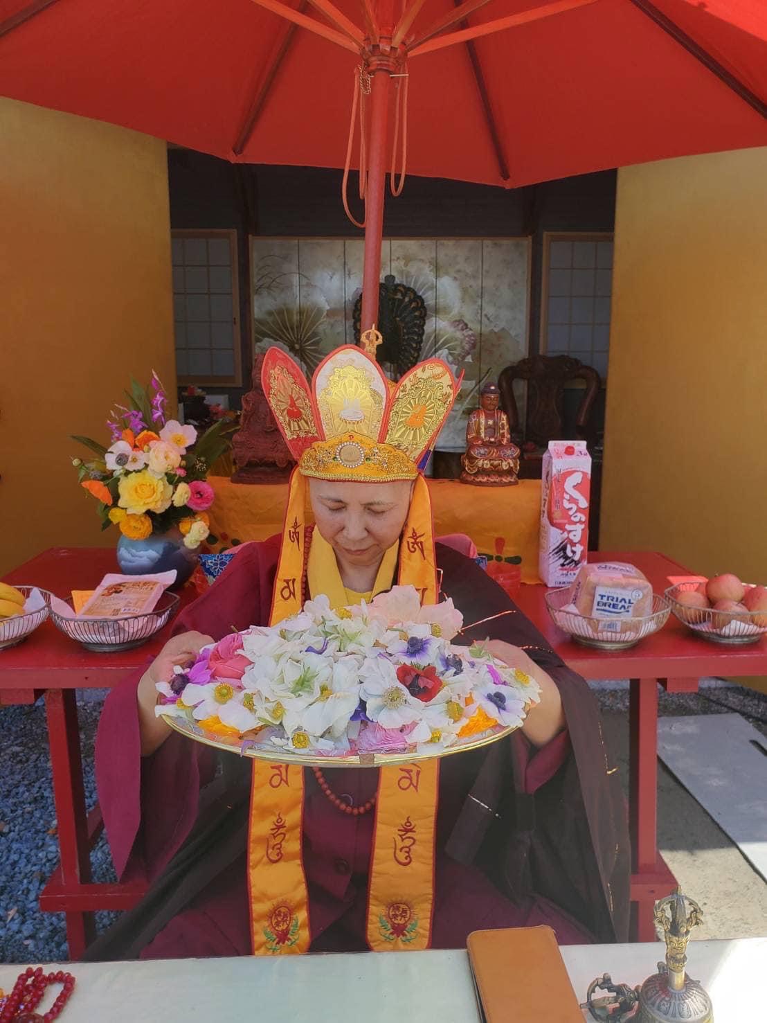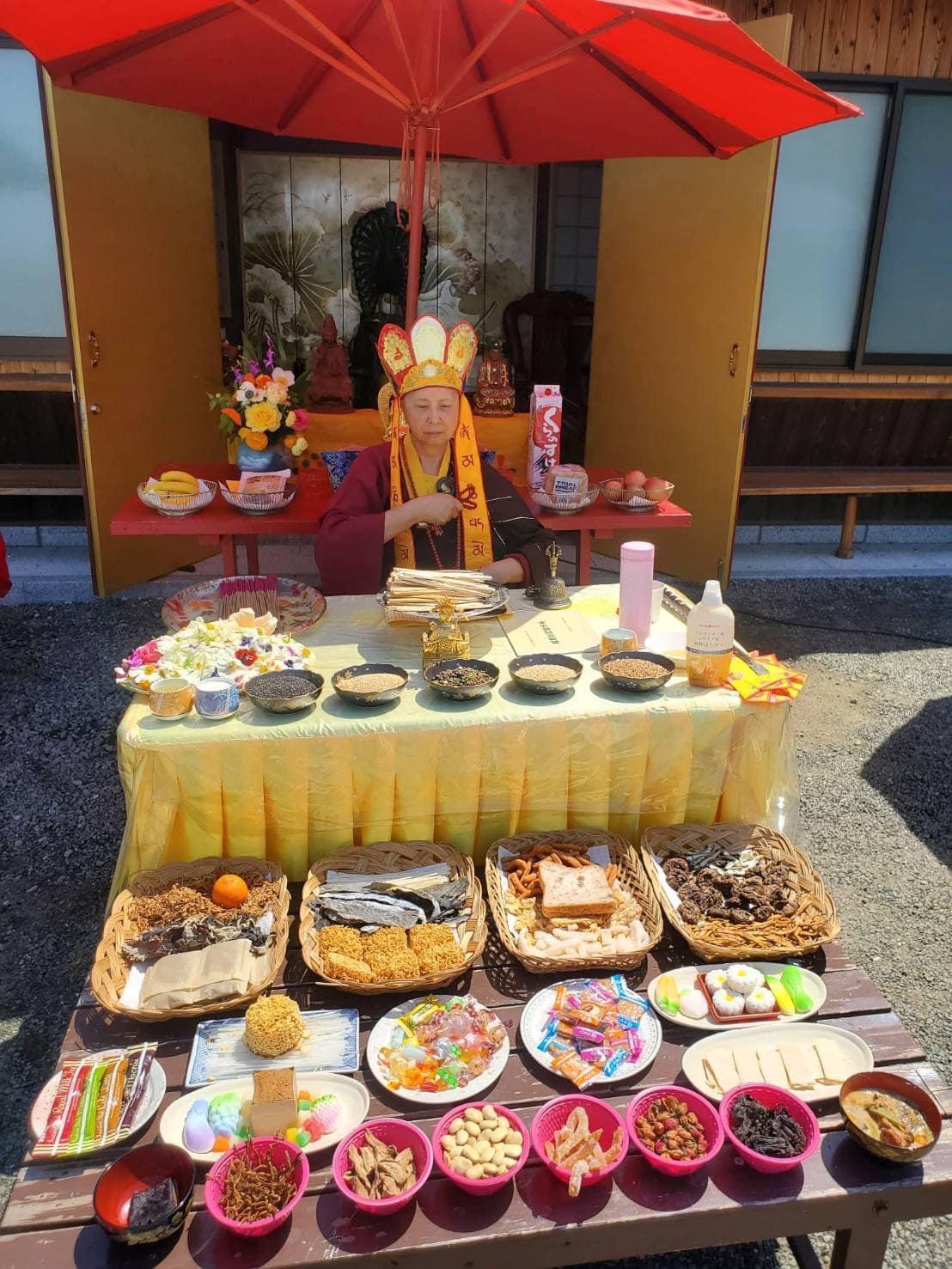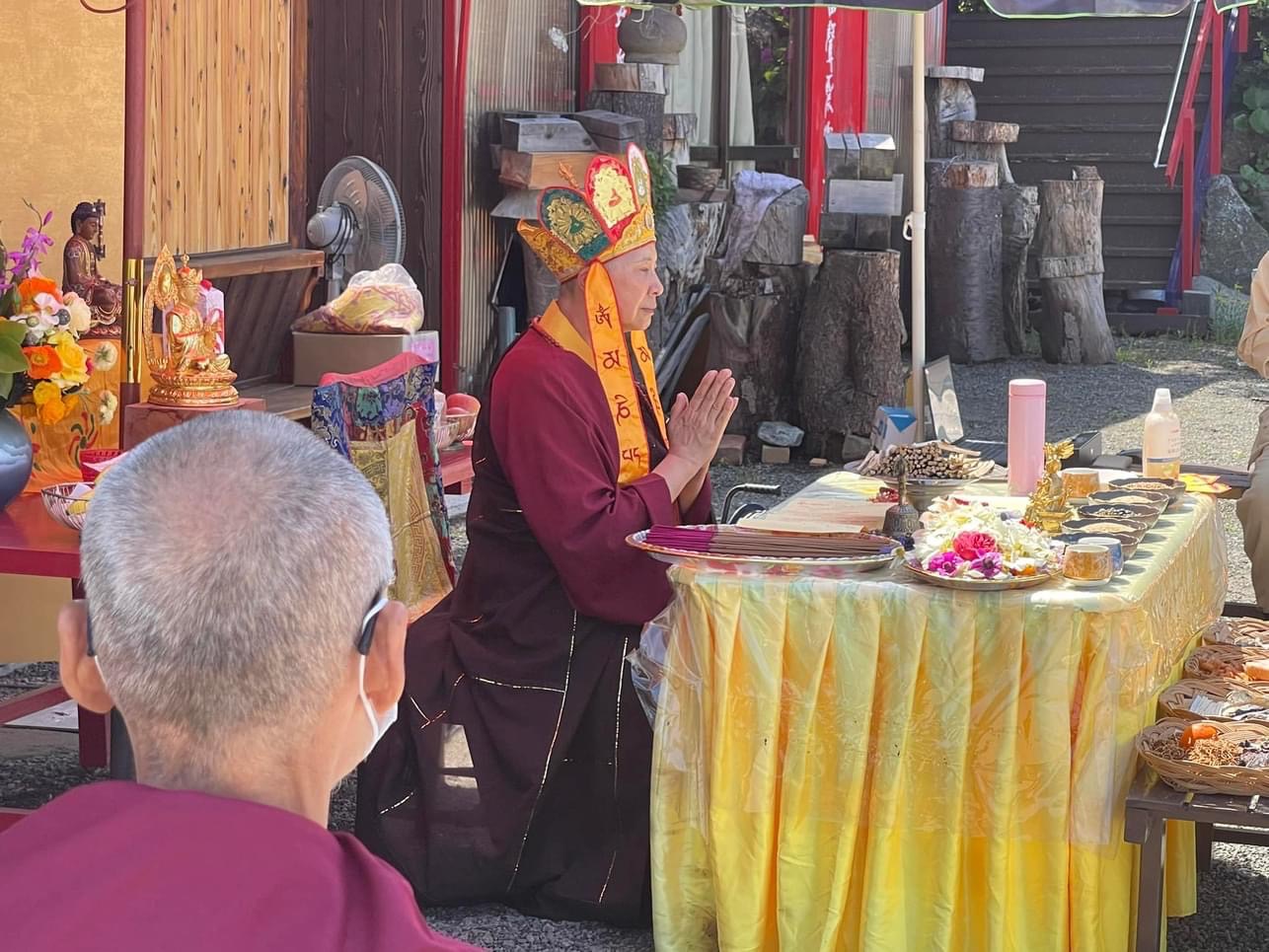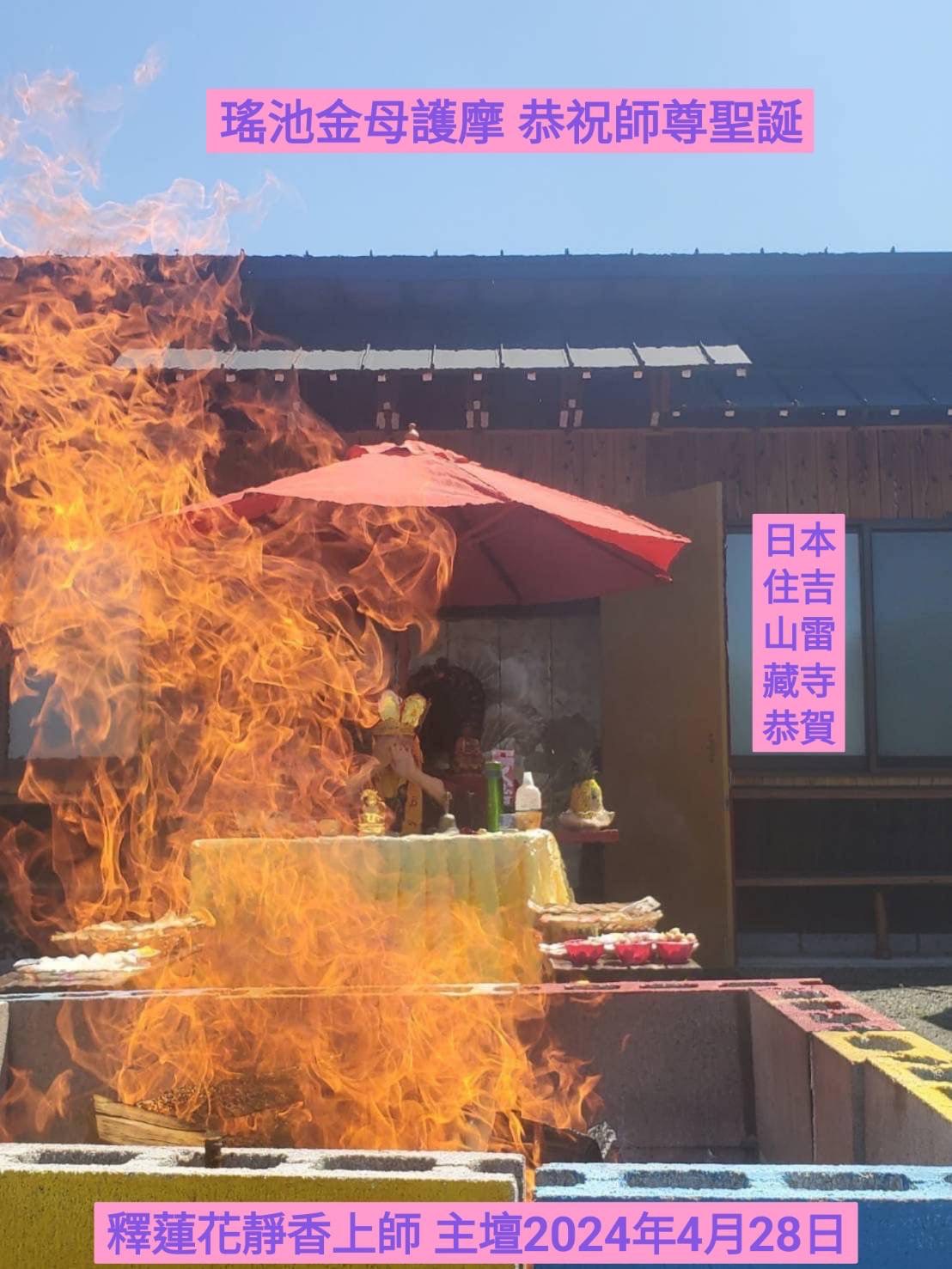 釋蓮花靜香上師於2024年4月28日在日本住吉雷藏寺主壇專壇「請佛住世瑤池金母護摩」,迴向師佛: