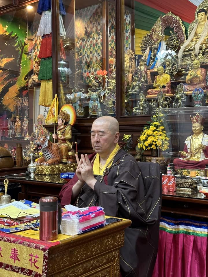 釋蓮祖上師於2024年4月26日在印尼圓月堂主壇專壇「請佛住世瑤池金母護摩」,迴向師佛: