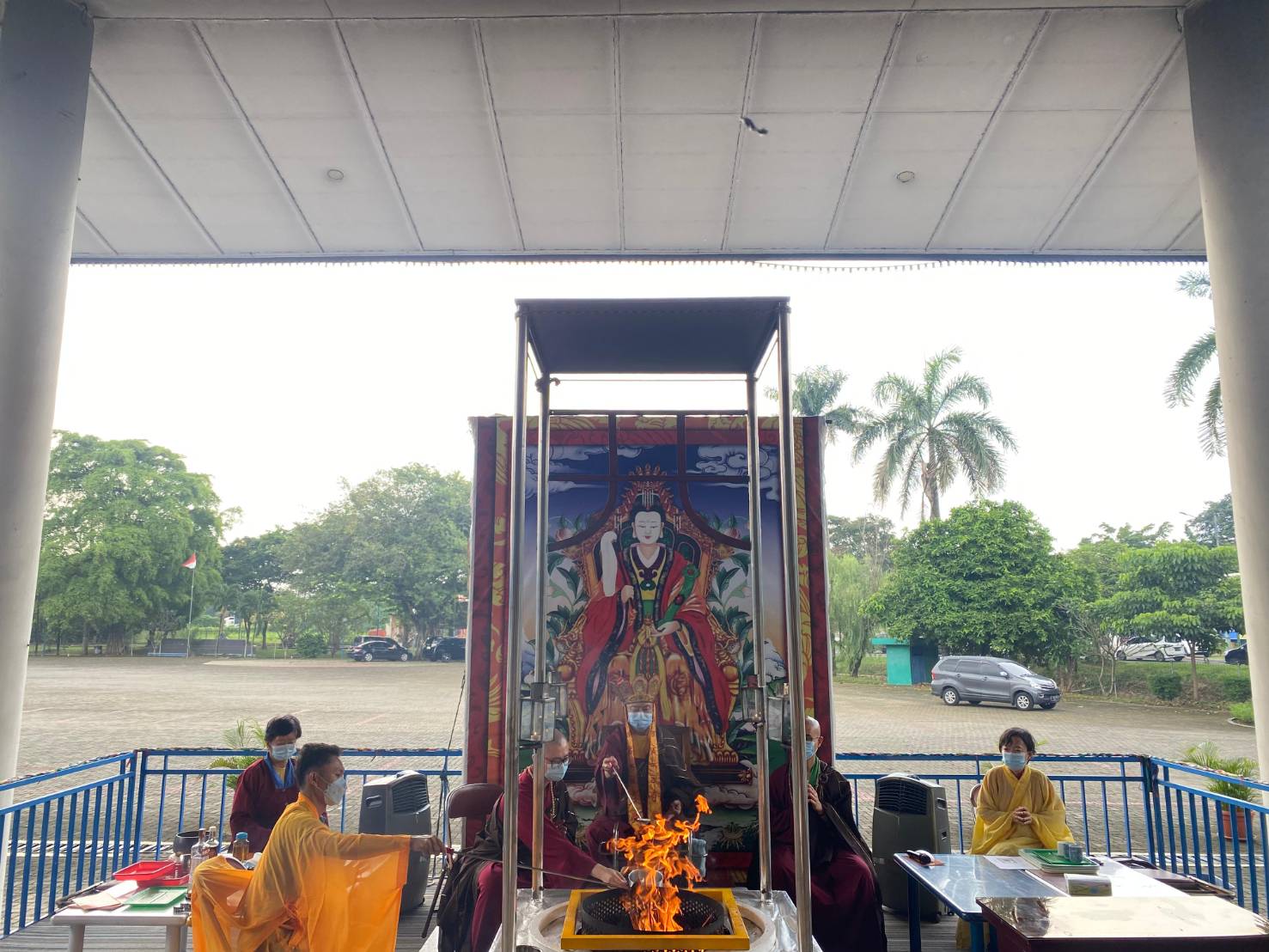 蓮飛上師於2024年5月2日在印尼雷藏寺主壇專壇「請佛住世瑤池金母護摩」,迴向師佛: