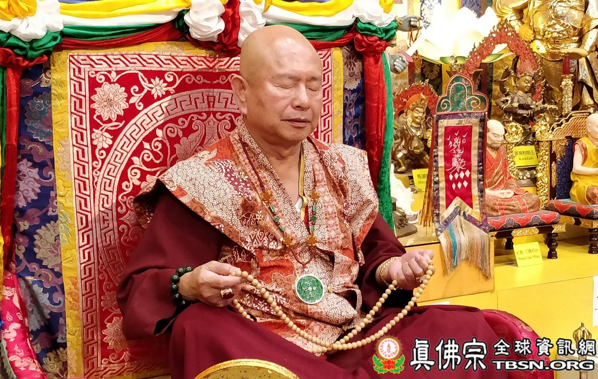 聖尊接著又談到有同門問及「唸珠觀想」的問題,聖尊解釋道︰「穿過珠子的那條線,要觀想成為白色的金剛鍊圈成一圈,這個圈就是象徵著金剛薩埵。佛頭珠與三顆間珠,就觀想成為四大天王分立於四方,四天王是守護佛教徒修法的。佛頭珠的上面觀想有阿彌陀佛和觀世音菩薩,每撥一顆唸珠持一句咒時,就觀想持咒本尊出現在你面前。觀想唸珠持咒的意義,是可以讓精神集中,如果還有別的念頭的話,稱為散唸。要將念頭專注在佛身上的正唸才有效。」