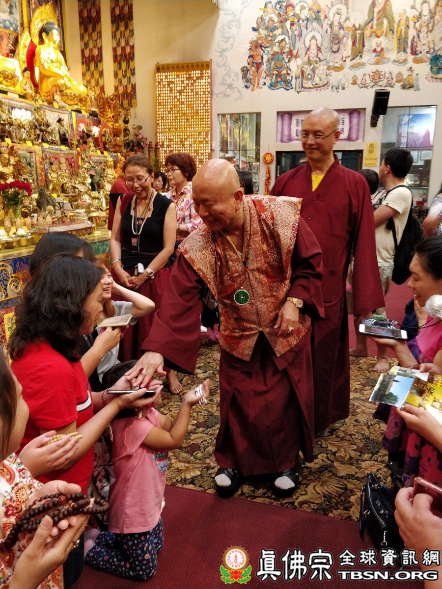 在精彩的開示後,聖尊為求皈依的信眾賜受灌頂,並加持大悲咒水,以及佛像開光,臨行前亦為大眾摩頂加持。聖尊慈悲將深奧難懂的密法,用清晰易懂的方式教導弟子,感謝根本上師的功德力能加持弟子能修行有成。