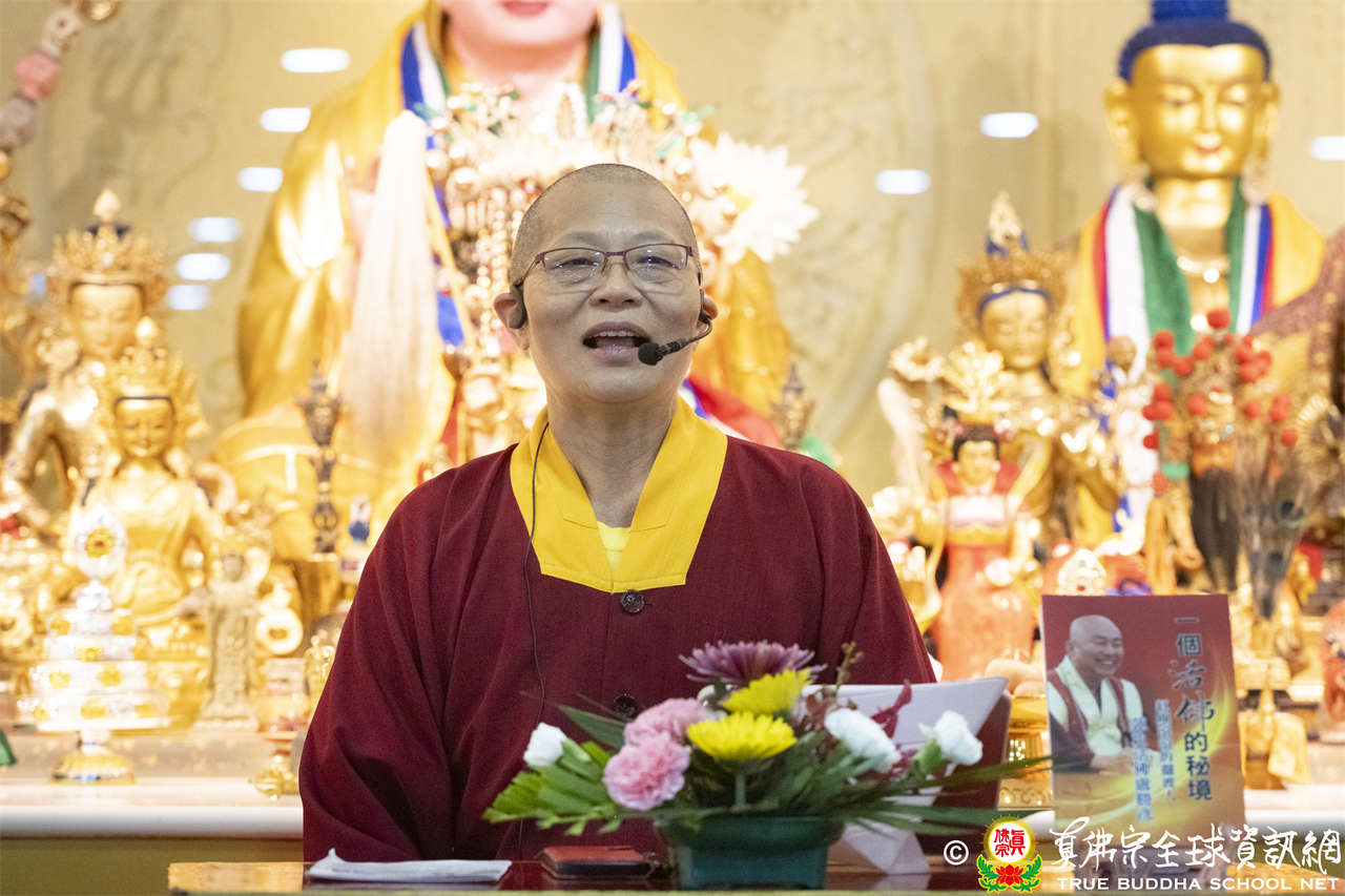 釋蓮悅上師,分享「我所知道的蓮生活佛」,她說:我們每個人用不同角度來了解的師尊是不一樣,師尊300文集對一個作家來是遙不可及的里程碑,真佛報從四月開始連載了「一個活佛的秘境」將師尊的一生,由平凡到超勝娓娓道來。另外「師尊飛越300文集導讀」,將師尊300冊文集,分為不同階段不同時期做了完整的剖析,讓同門拜讀 盧師尊的智慧書海時,能有清晰的導入點,歡迎大家來追劇!