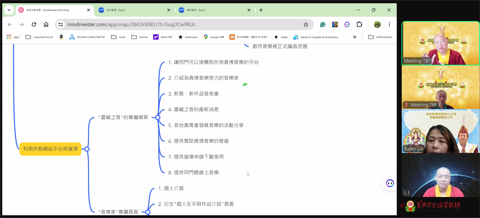2024年5月10日,長老蓮僧上師再度召集雲端會議,主要是針對真佛音樂協作/創作平台的規劃。出席者有長老蓮僧上師、雷藏之音主理人蓮舅上師、台灣真青會會長暨雷藏之音執行長素任助教以及公關處執行秘書蓮竹教授師等四位。