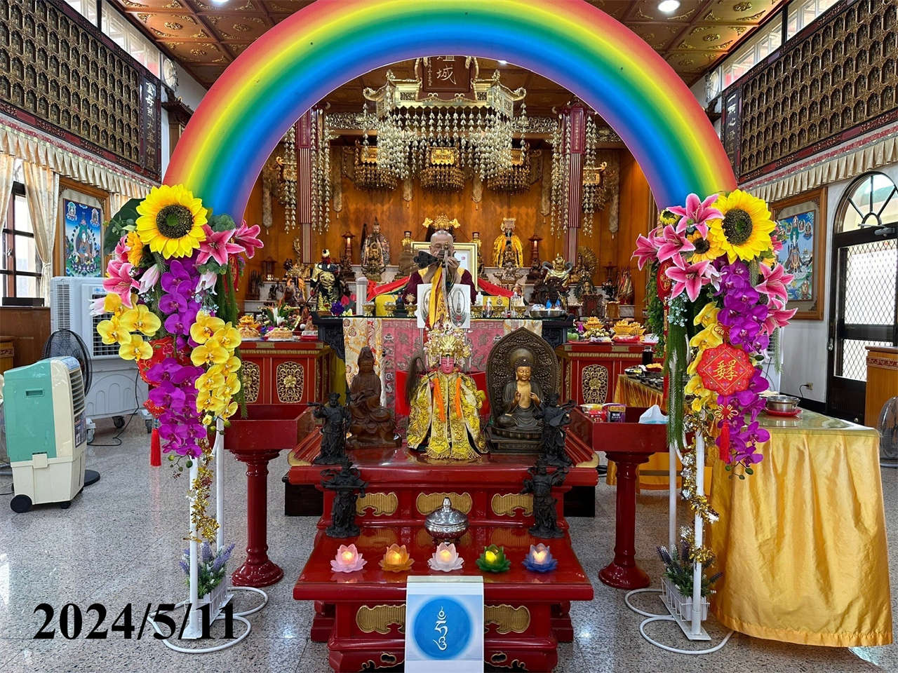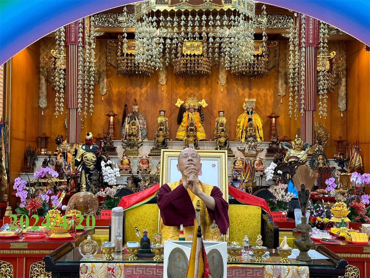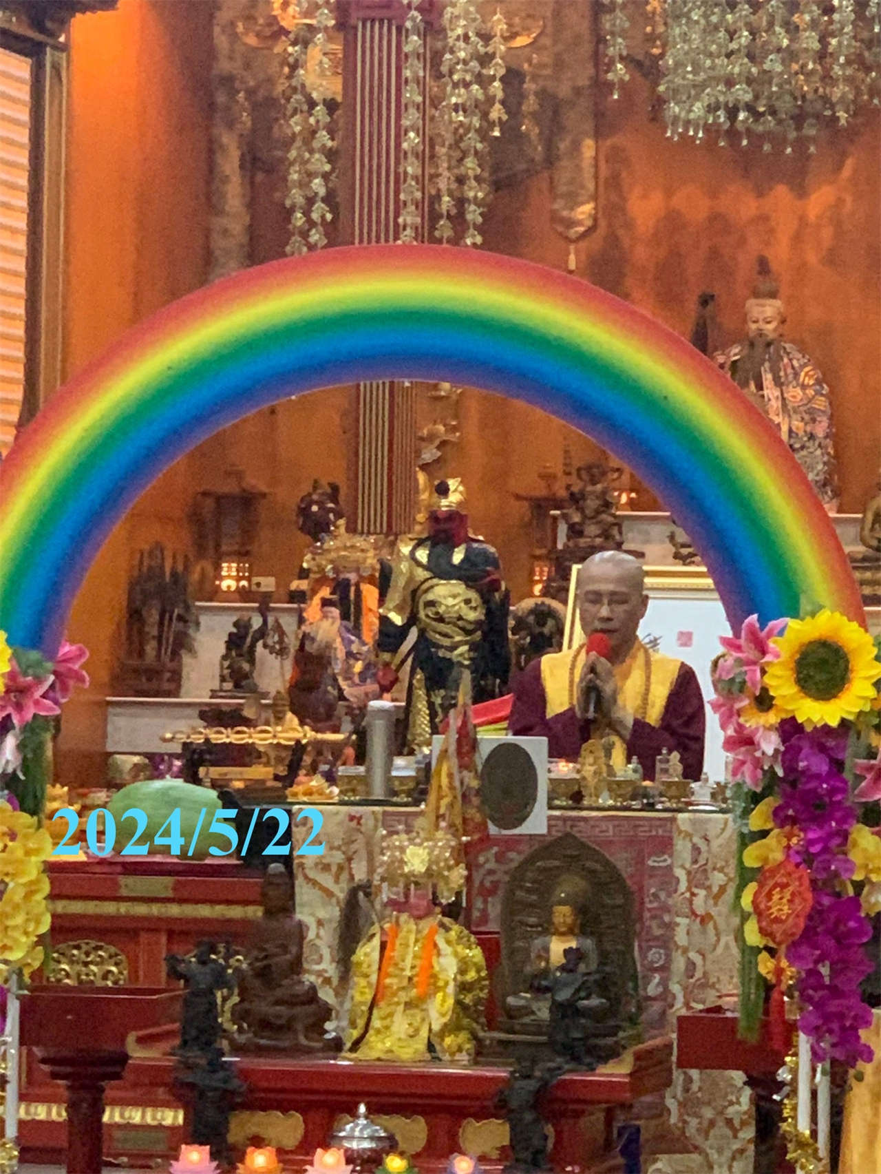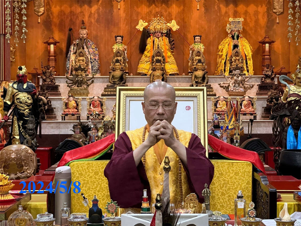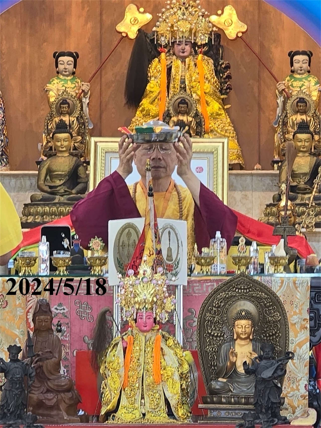 釋蓮郲上師於2024年4月17日、4月20日、5月8日、5月11日、5月15日、5月18日、5月22日在台灣金極雷藏寺主壇專壇「請佛住世瑤池金母水供」,迴向師佛: