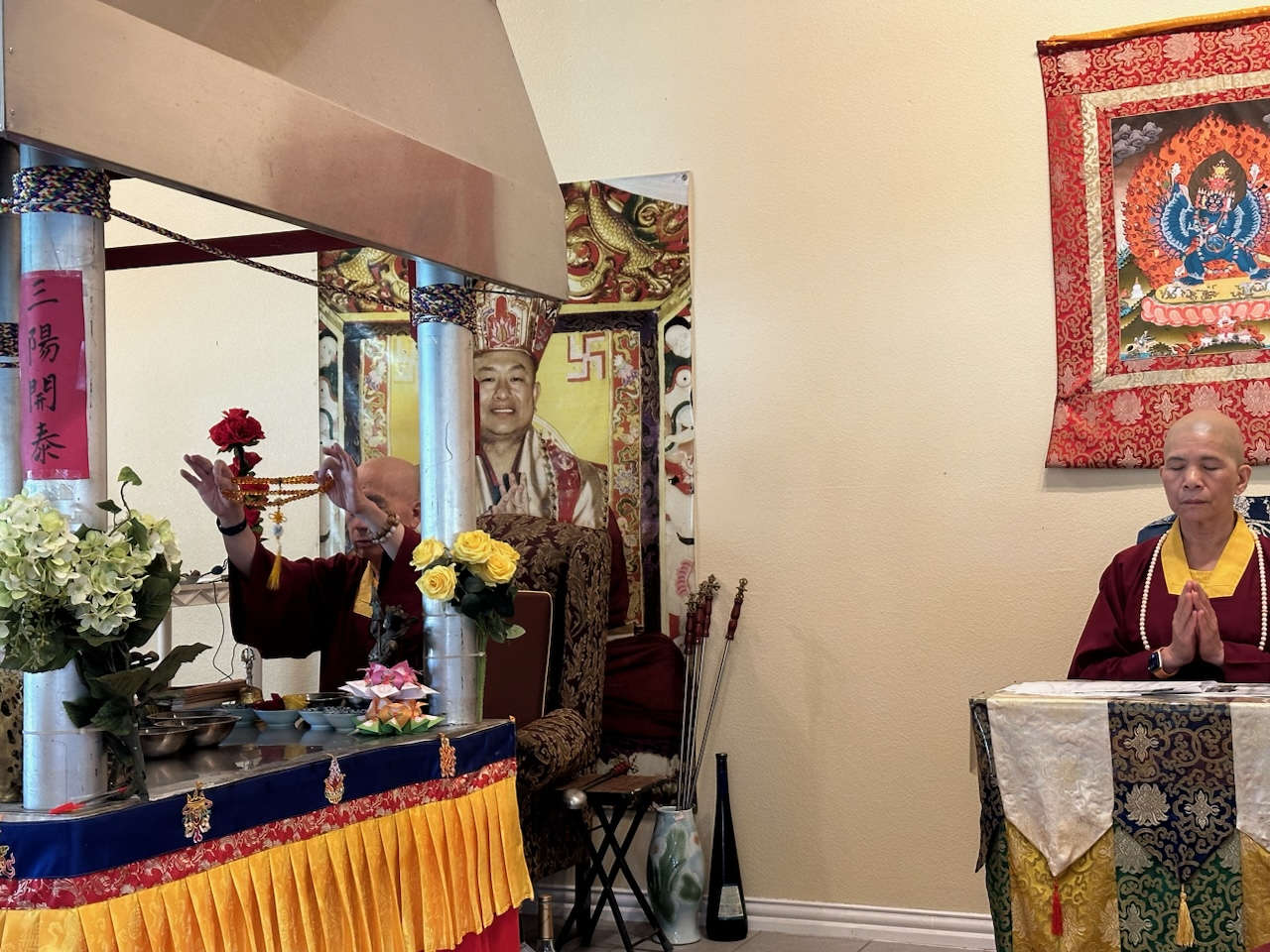 釋蓮鎮金剛上師於2024年6月16日在美國達拉斯三輪雷藏寺主壇專壇「請佛住世瑤池金母護摩」,迴向師佛: