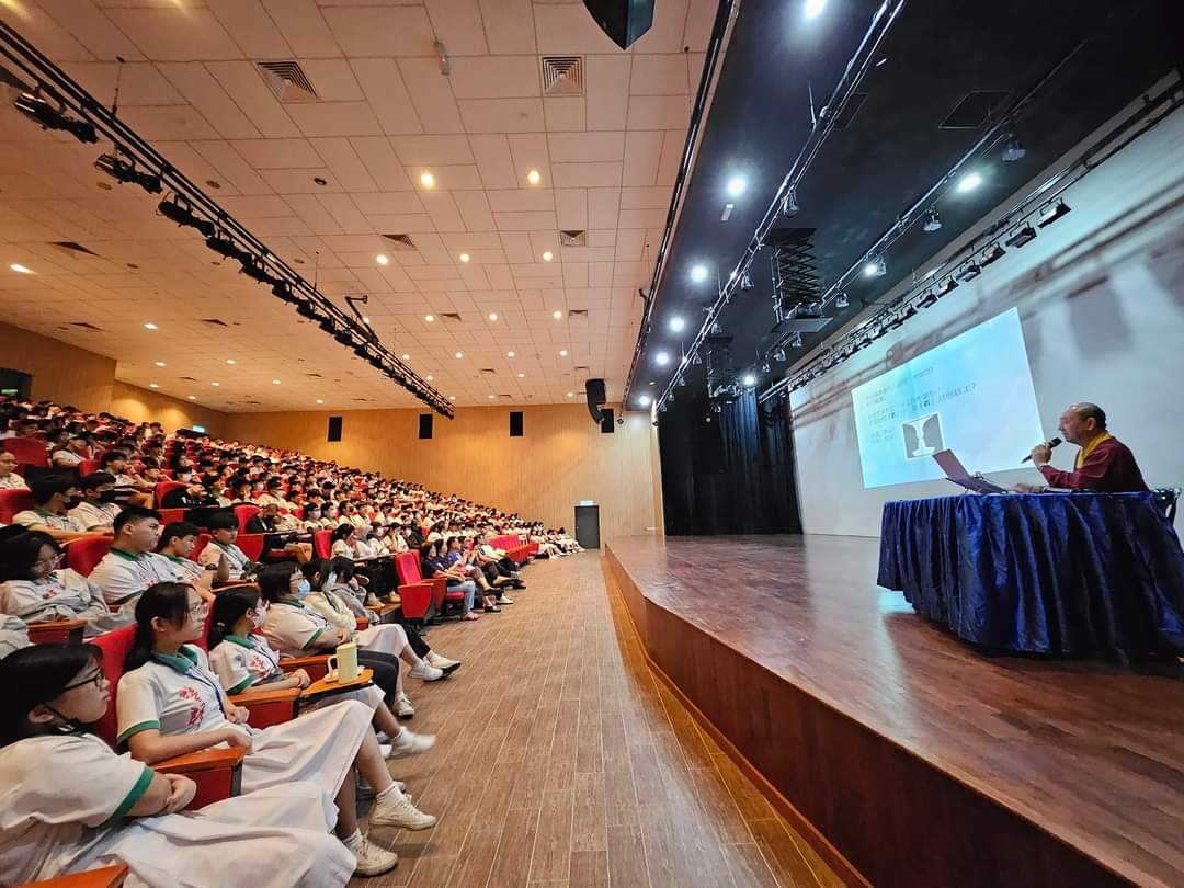 2024年7月5日早上9點,馬來西亞真佛宗傳律雷藏寺安排蓮花少東上師在馬來西亞笨珍培群獨立中學為約400名中學生講座。