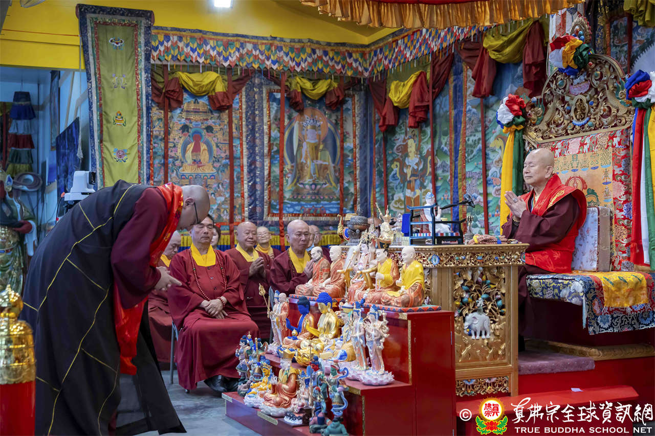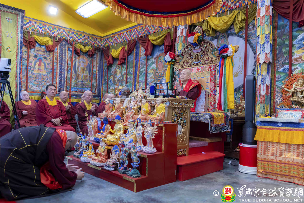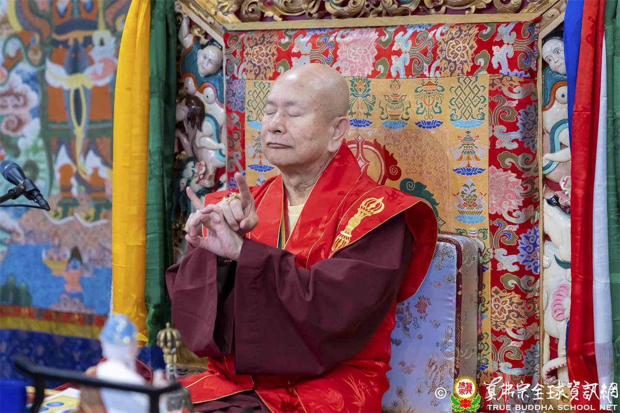 法王開示至此,護摩法會圓滿結束。接著,法王與線上的弟子打招呼,並為現場出席者賜授蓮華生大士法灌頂。