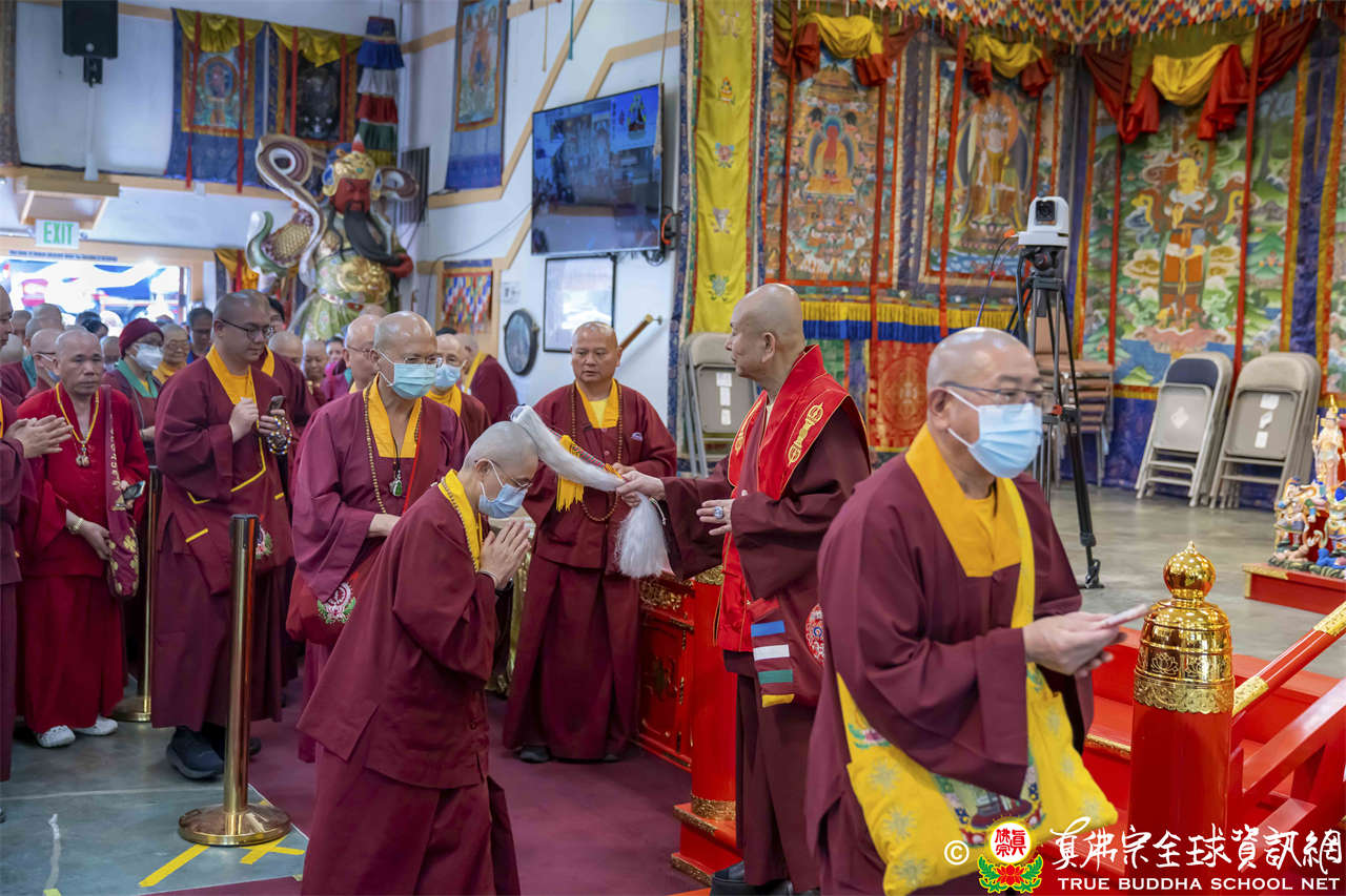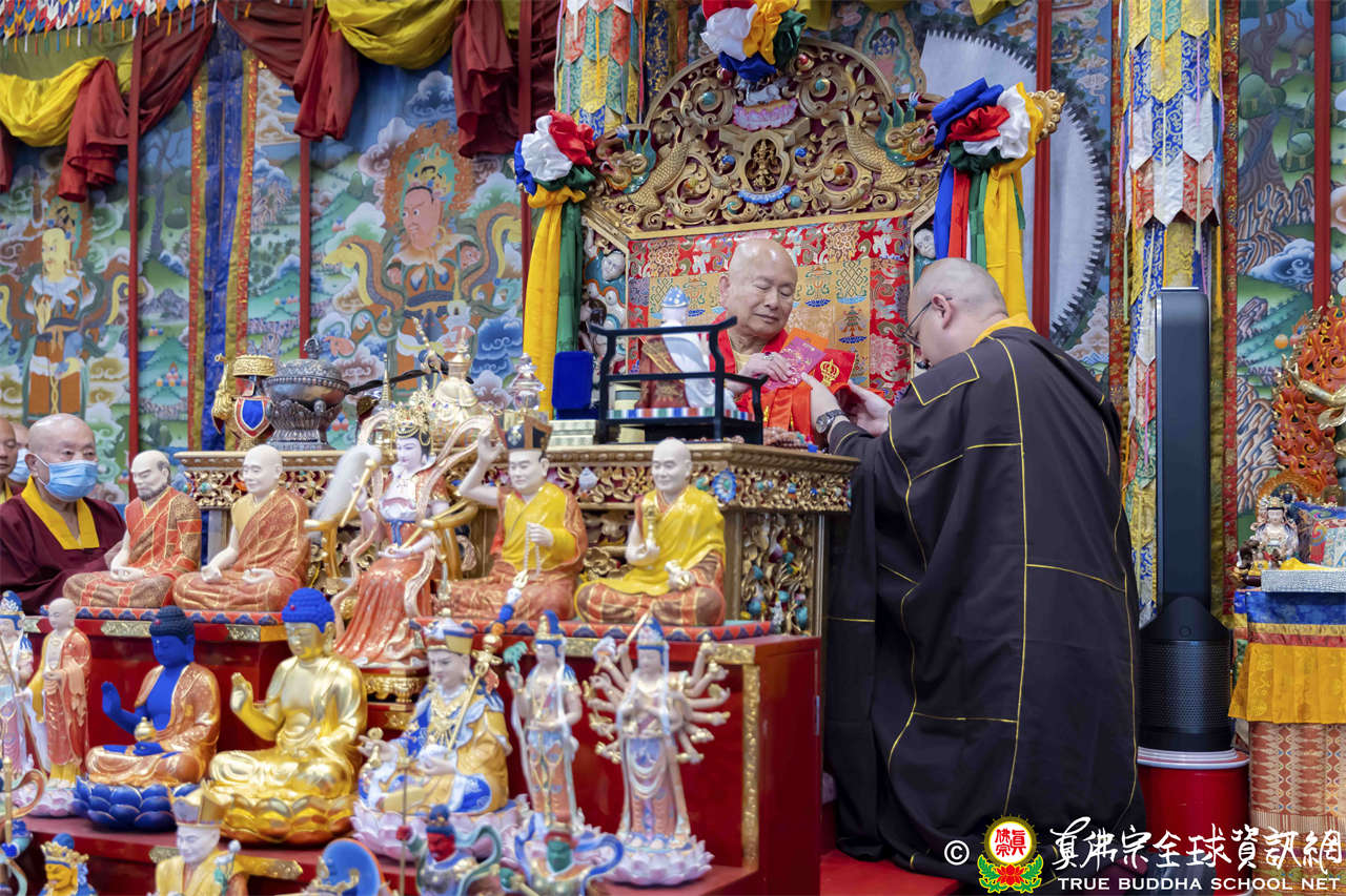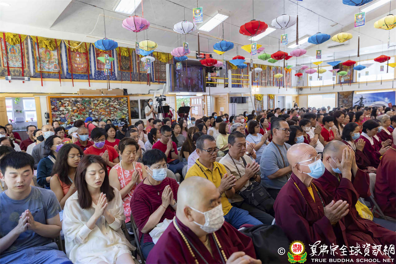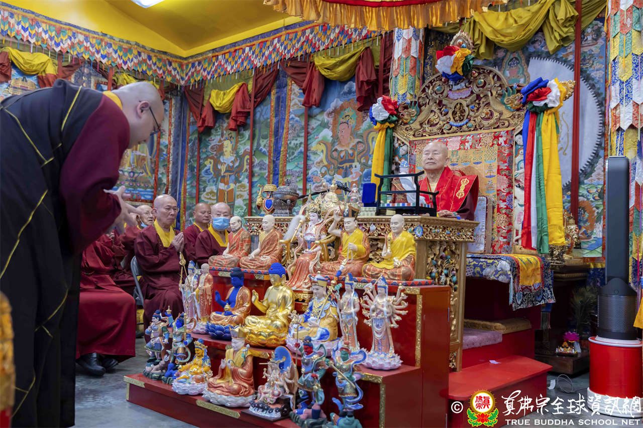 法王開示至此,護摩法會圓滿結束。接著,法王與線上的弟子打招呼,並為現場出席者賜授蓮華生大士法灌頂。