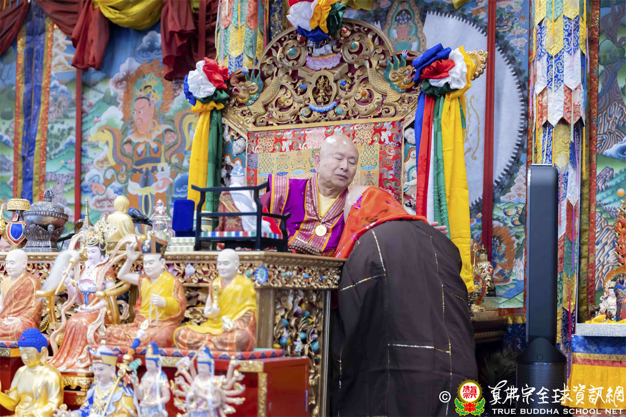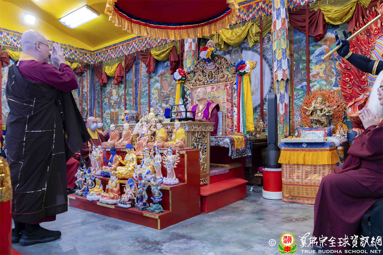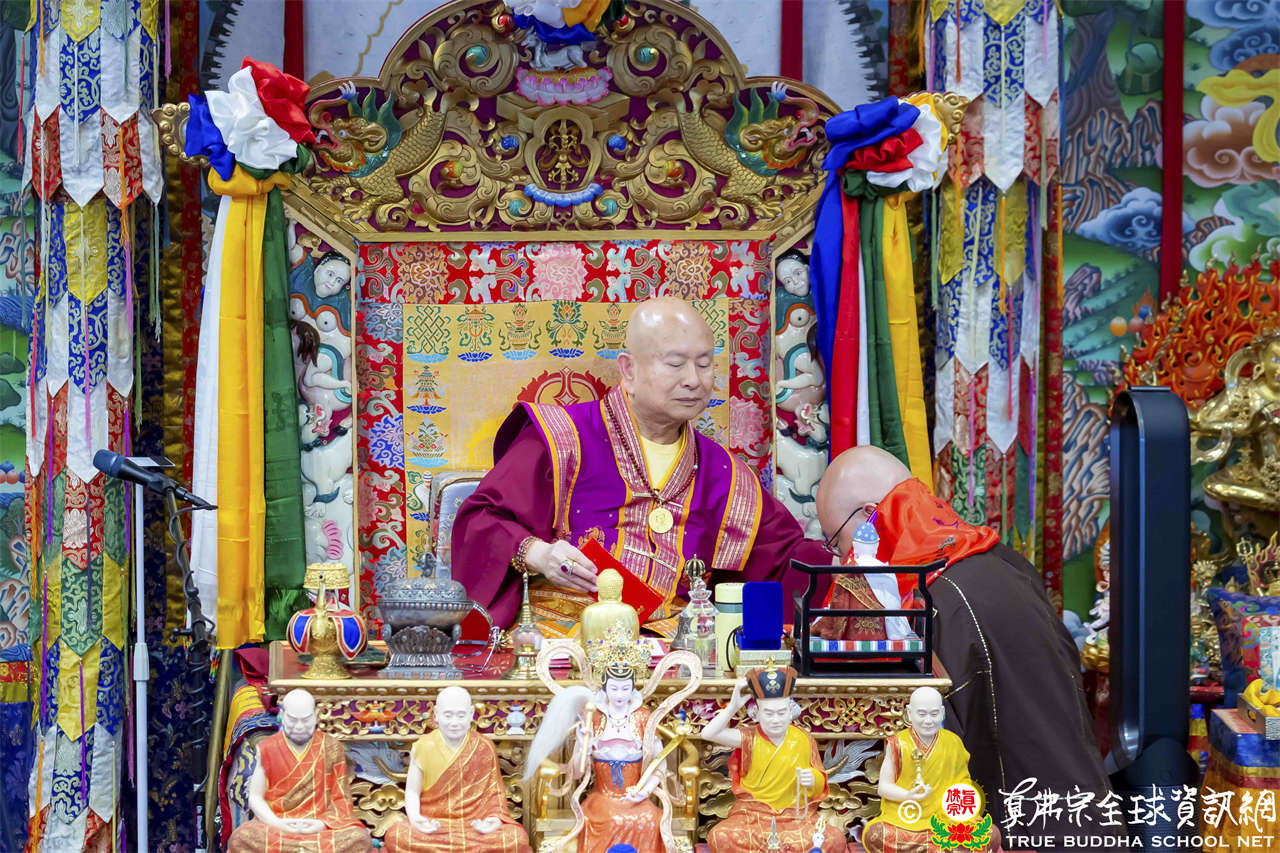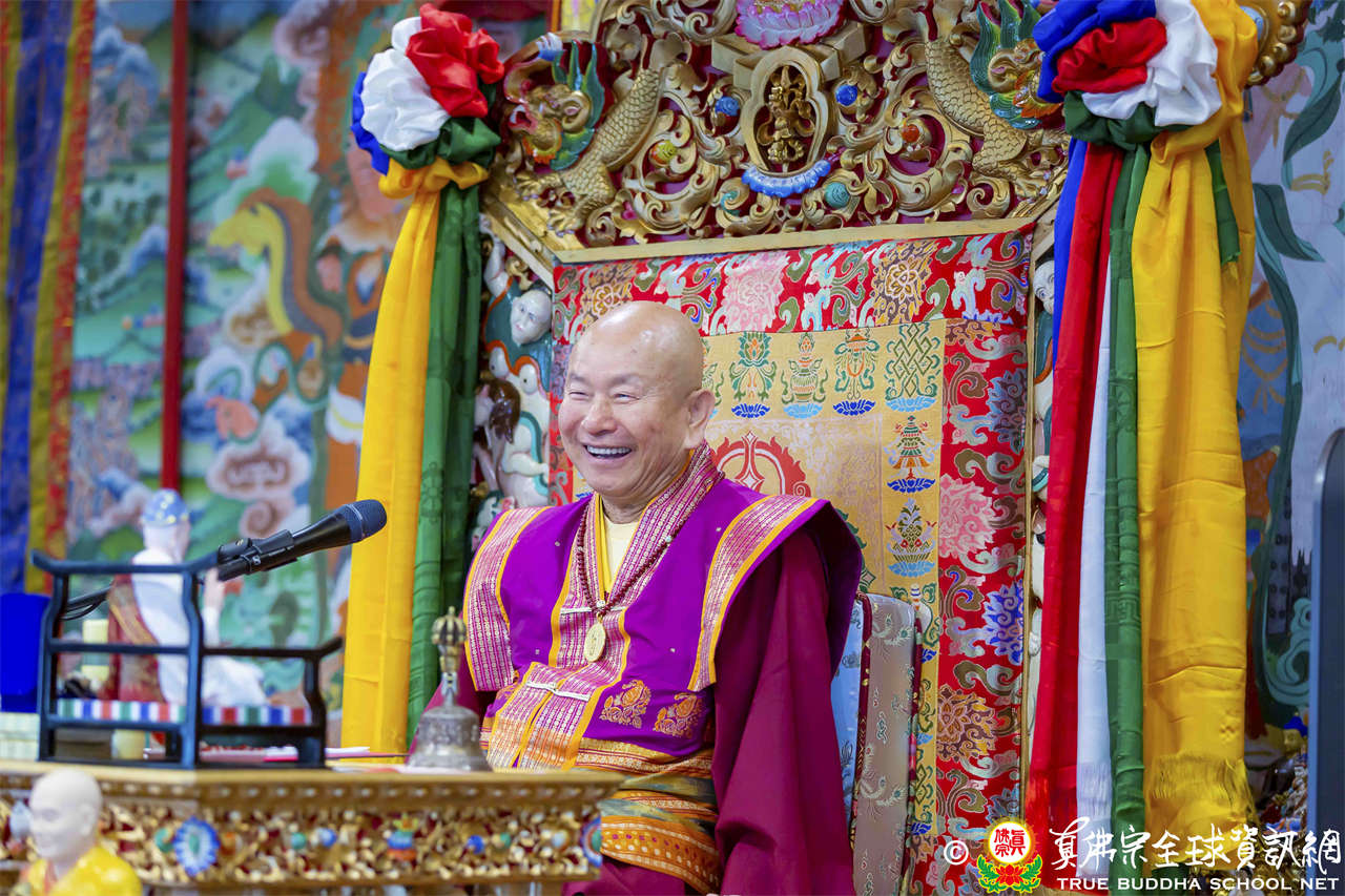 精彩的開示後,法王與網路線上弟子互動,並慈悲賜授現場弟子「阿彌陀佛法及千艘法船法灌頂」,與會眾等法喜充滿、心開意解,護摩法會圓滿吉祥。